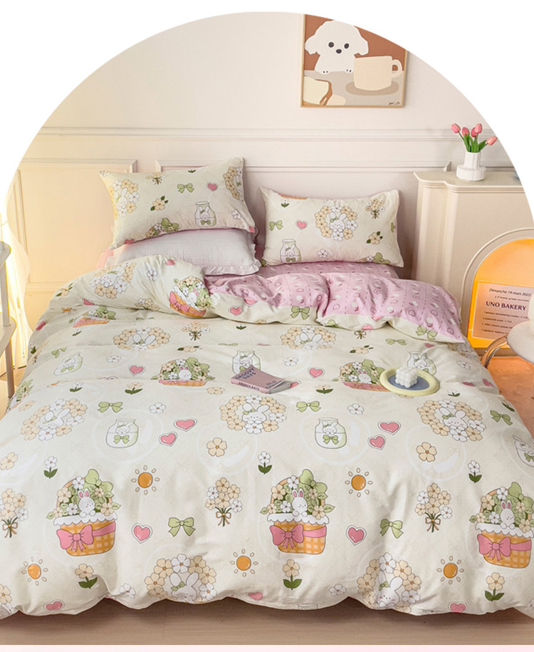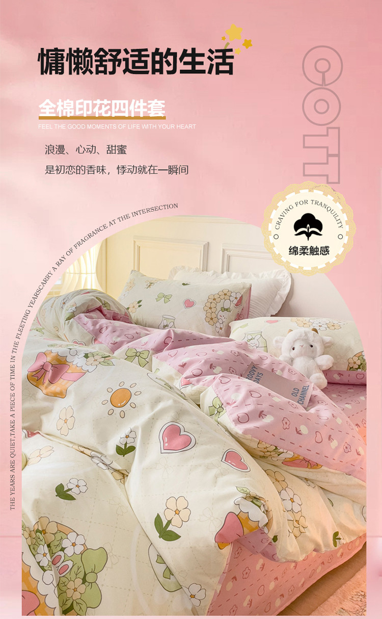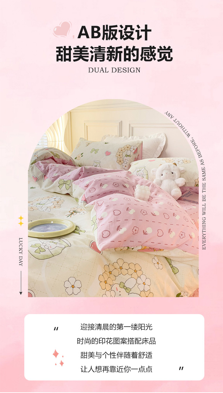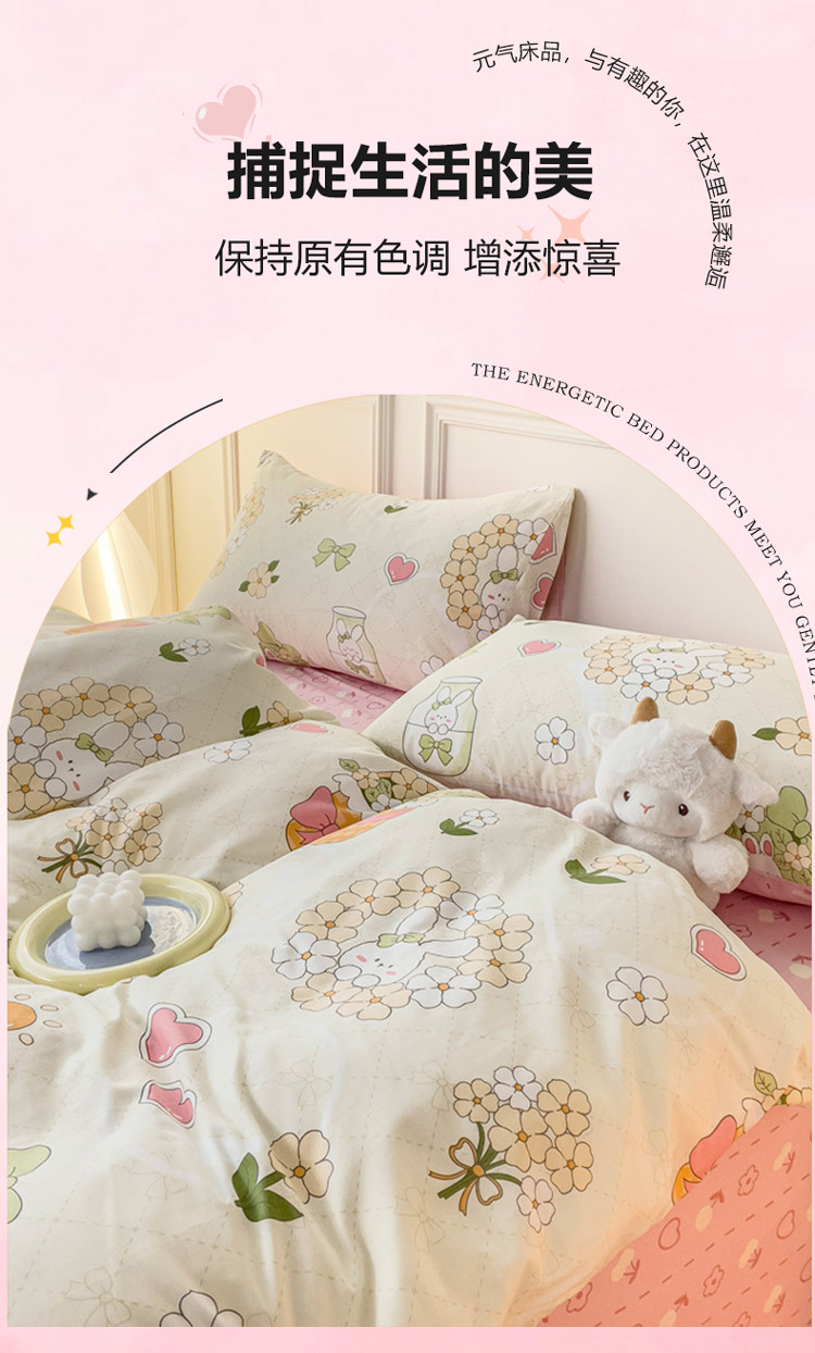 (总)感遇家纺 2025新款小清新甜系全棉四件套,百丽兔,波点小女孩,点点小狗,复古樱桃,格子草莓,格子樱桃,花间牧歌,灰条猫咪,奶绿,宁夏,森林小熊猫,甜心波点