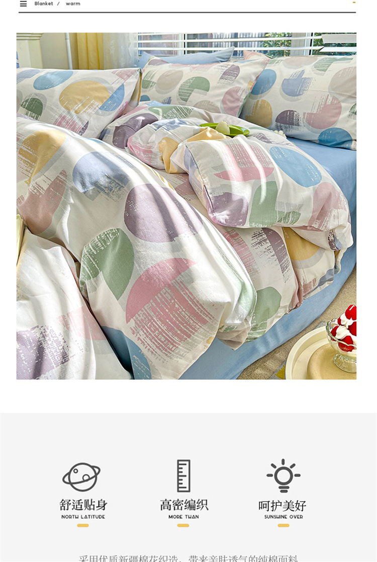 当前位置: 91家纺网 > 商品网购 > 床品套件 > 四件套 > 全棉普通四件套 > 麦伦家居 2023新款全棉简约个性北欧系列四件套-第 一组 彩色圈圈