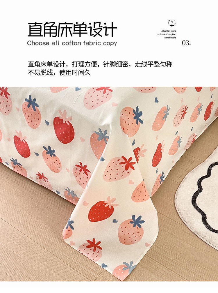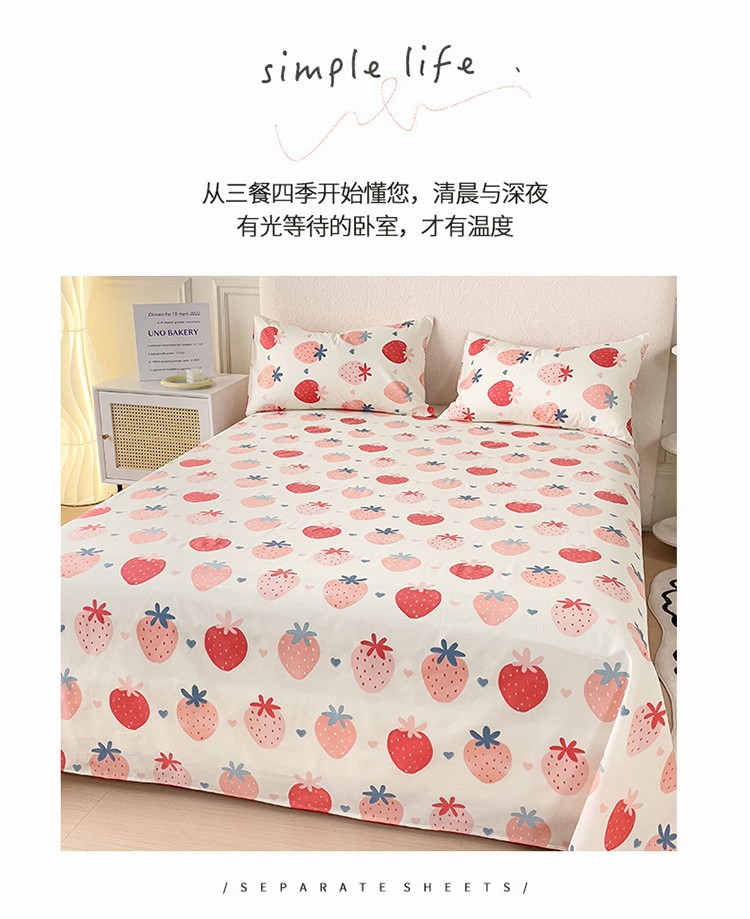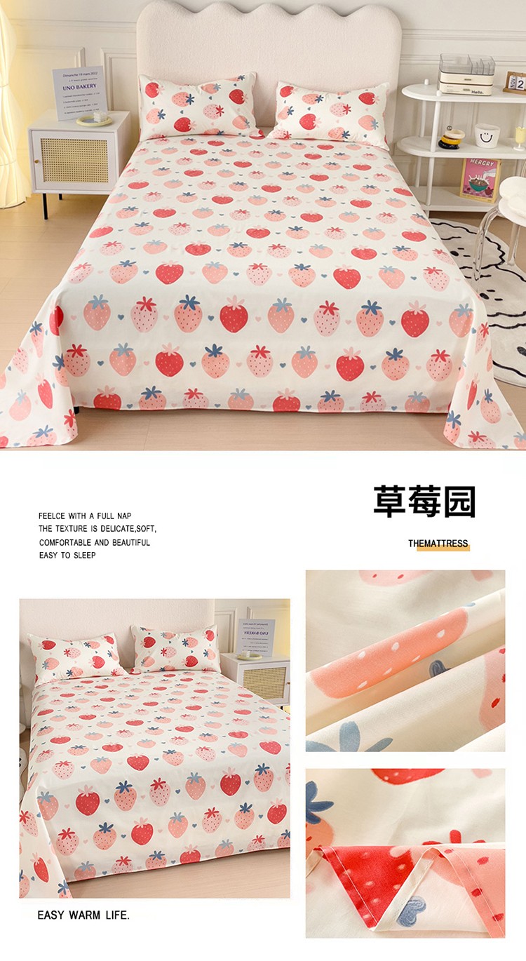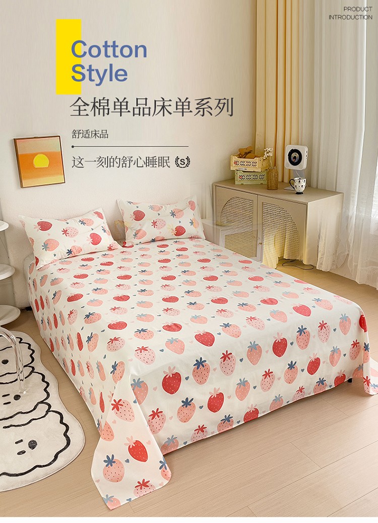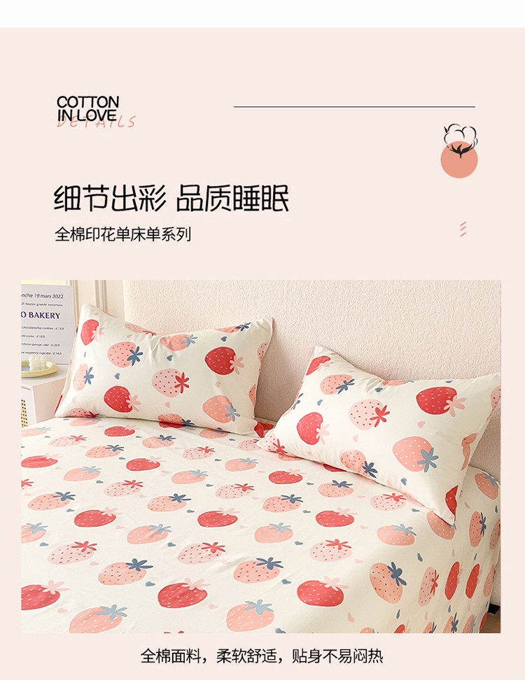 商品名称:金丝鸟 2023新款全棉纯棉印花系列单品床单 草莓园