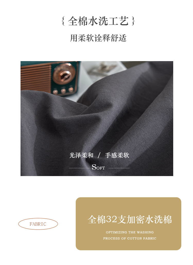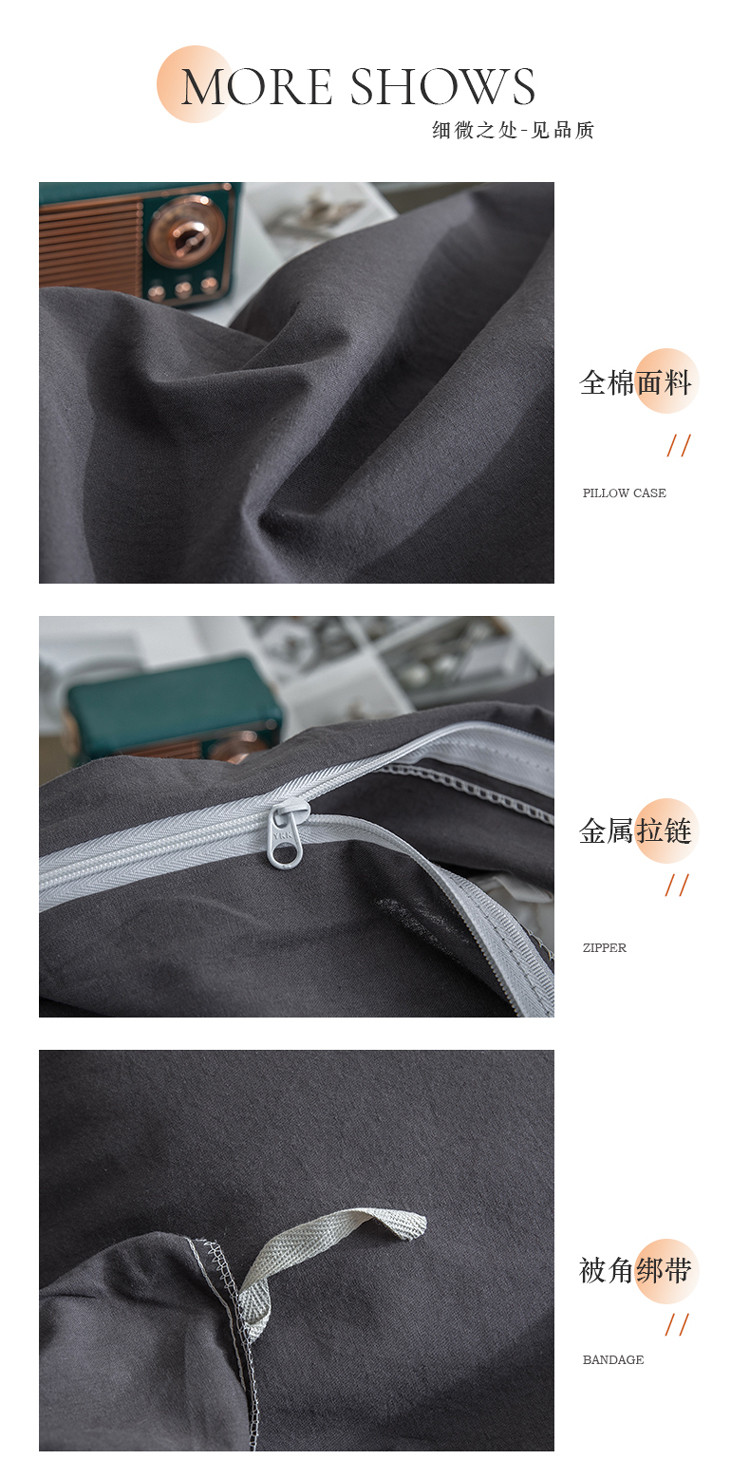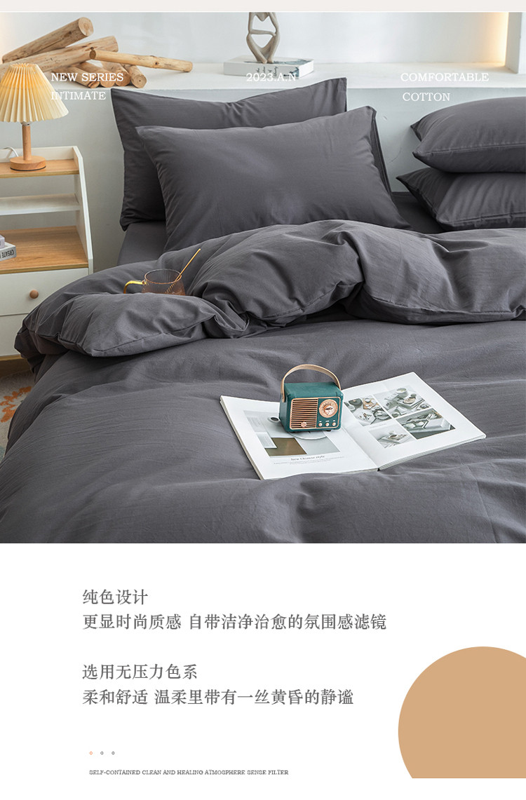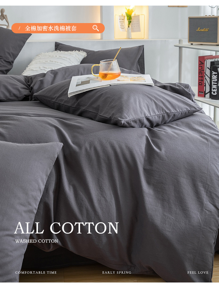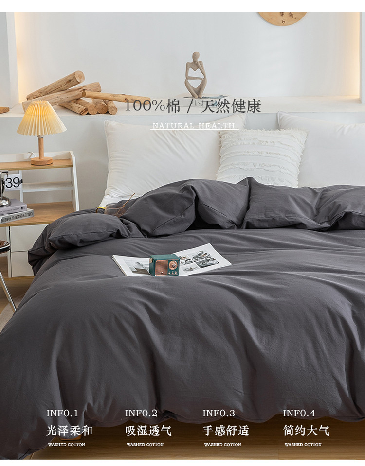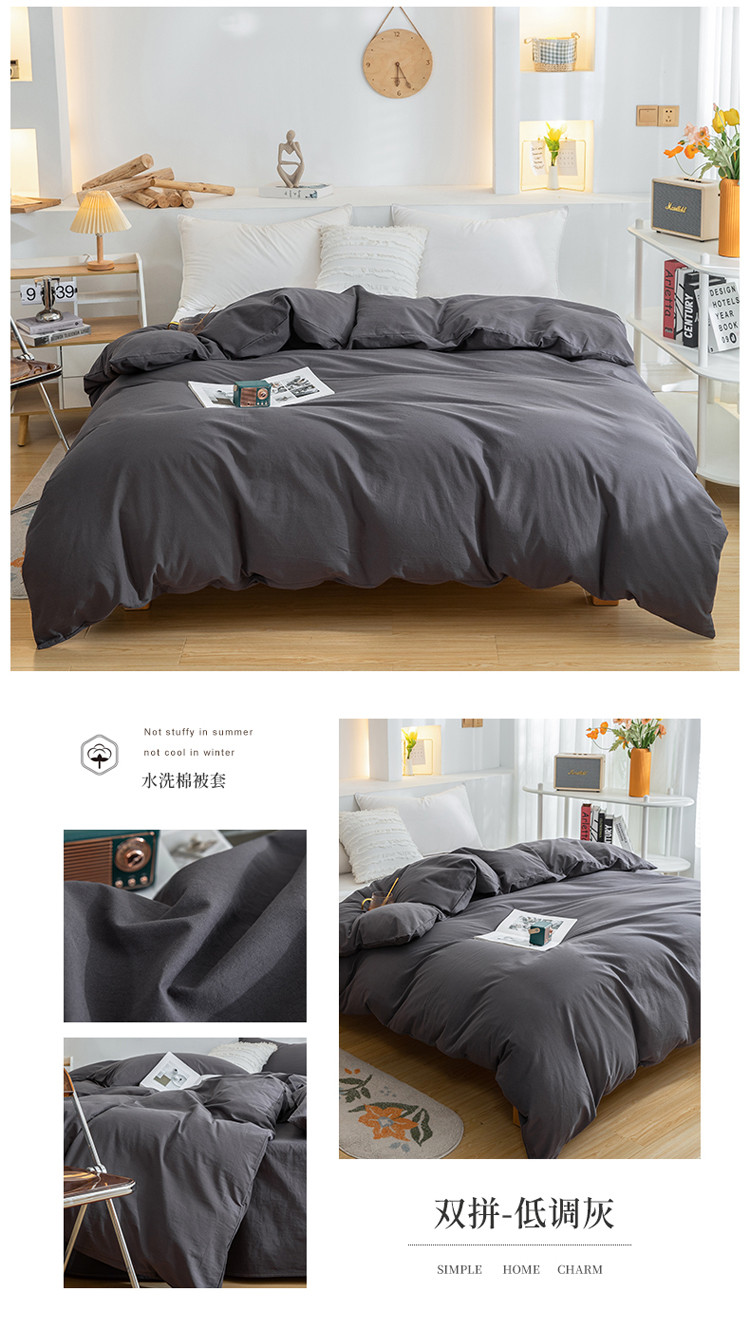 商品名称:柠萌家居 2023新款全棉双拼水洗棉单品单被套 双拼-低调灰