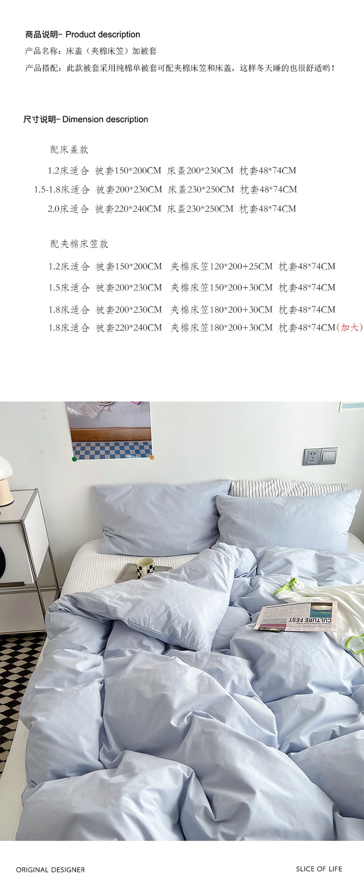猪先生 2022新款极简风纯棉床盖床笠四件套 浅蓝+极简白