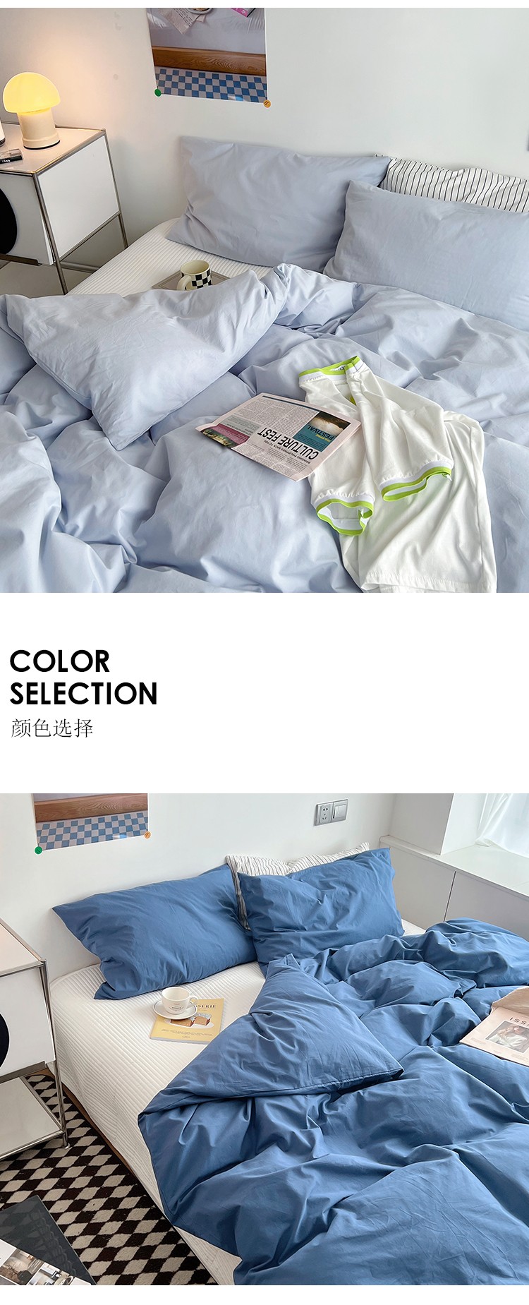 北欧风ins纯棉水洗棉床四件套全棉简约被套床单上三件套床笠,白色+藏青,藏青+浅蓝,鹅黄+螺旋藻绿,鹅黄+牛油果,螺旋藻绿+鹅黄,千夏紫+水貂灰,千夏紫+薇薇紫,薇薇紫+浅灰,浅蓝+鹅黄,浅蓝+白色,浅蓝+藏青