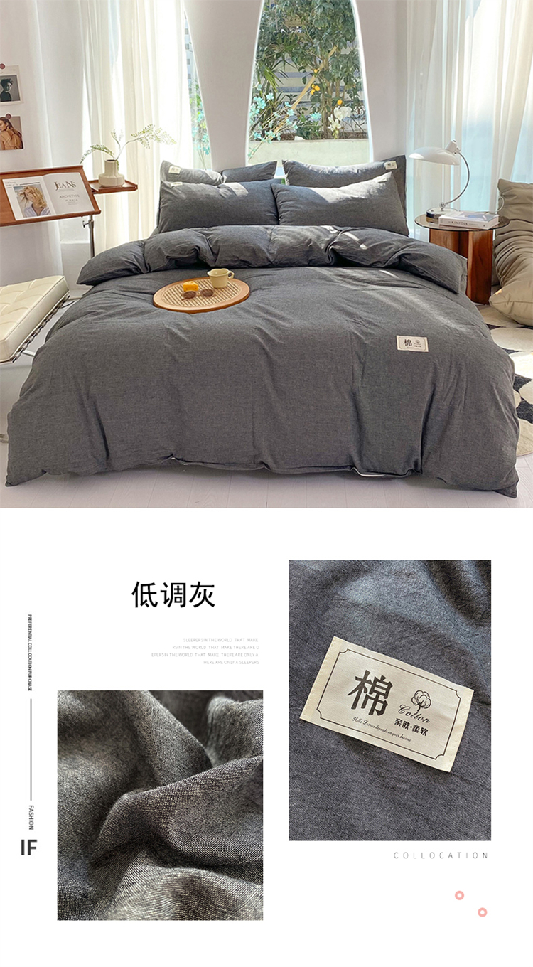 当前位置: 91家纺网 > 商品网购 > 床品套件 > 四件套 > 水洗棉四件套 > 云家2023无印风色织全棉纯棉水洗棉系列四件套纯色格子 低调灰