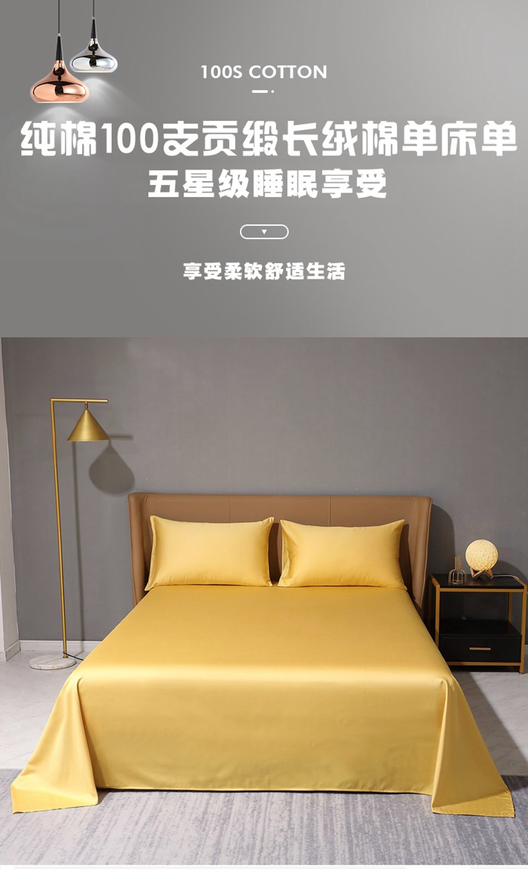 商品名称:晶缦家纺2023新款纯棉50支双股贡缎长绒棉纯色单品床单 纯沐-玉米黄