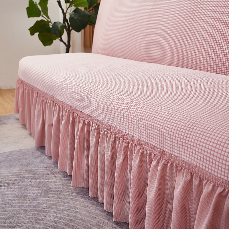 丝绮鹿 2023新款玉米粒裙边款沙发床套 暗粉