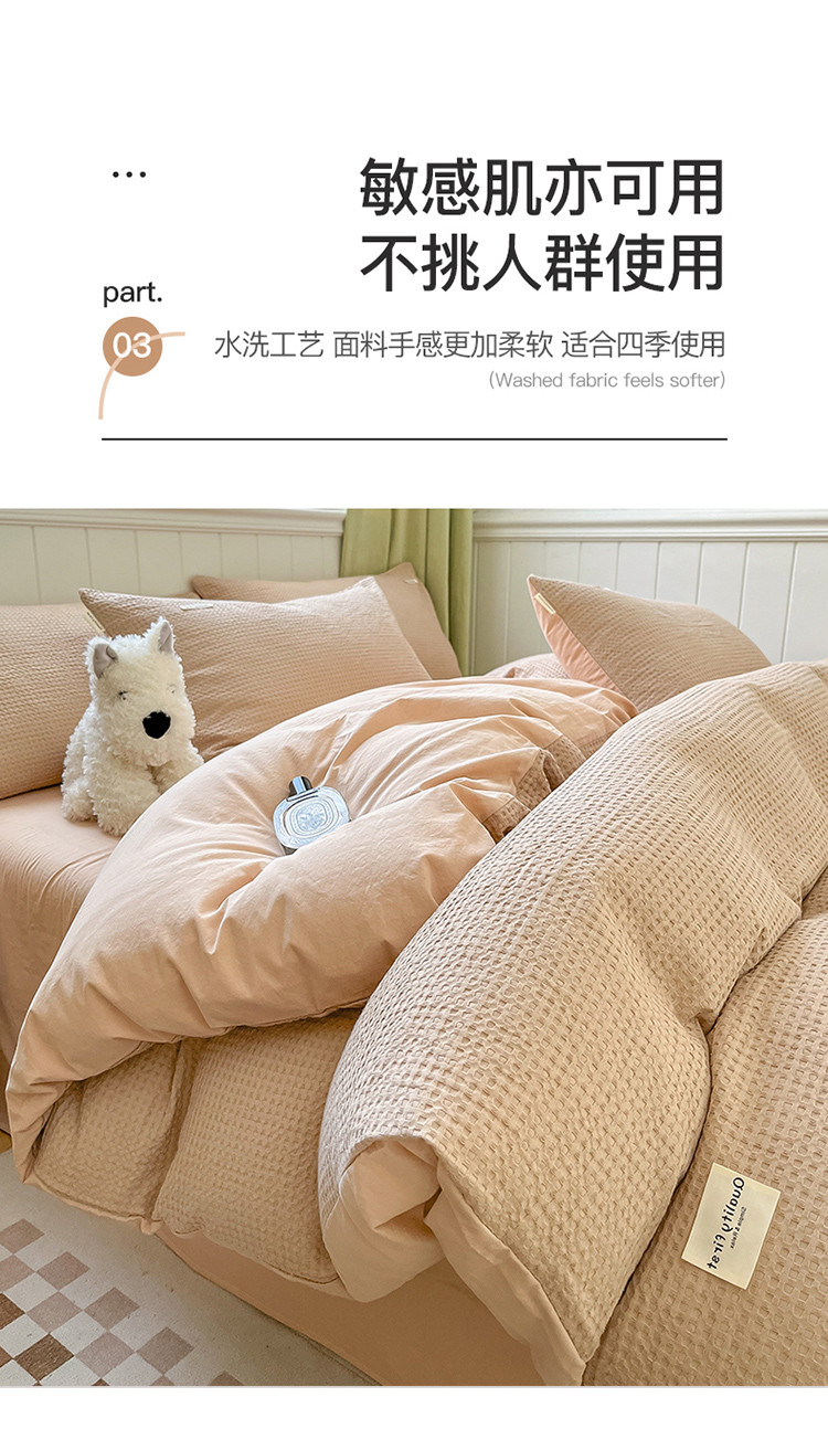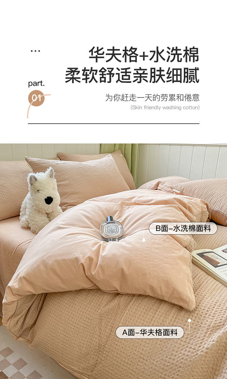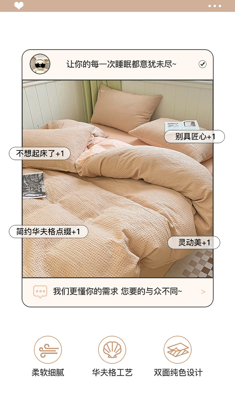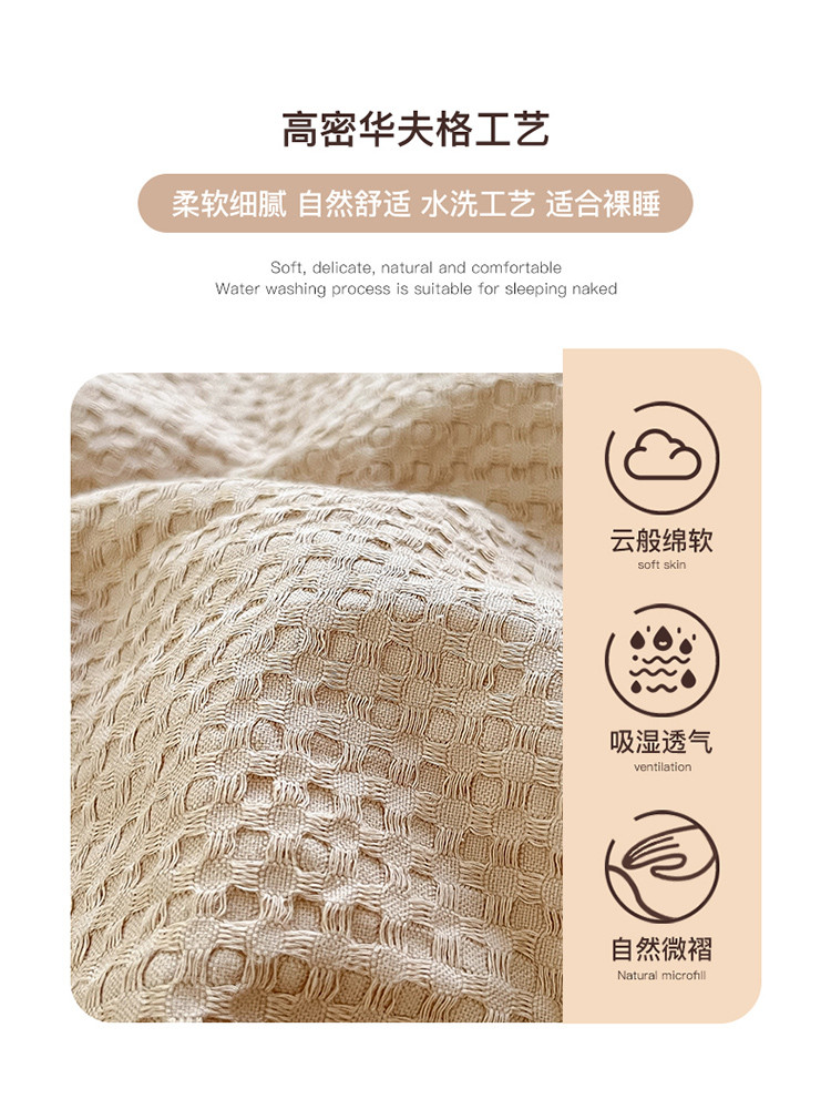 当前位置: 91家纺网 > 商品网购 > 床品套件 > 四件套 > 水洗棉四件套 > 丽美人 2023新款华夫格亲肤水洗棉四件套 华夫格-香槟
