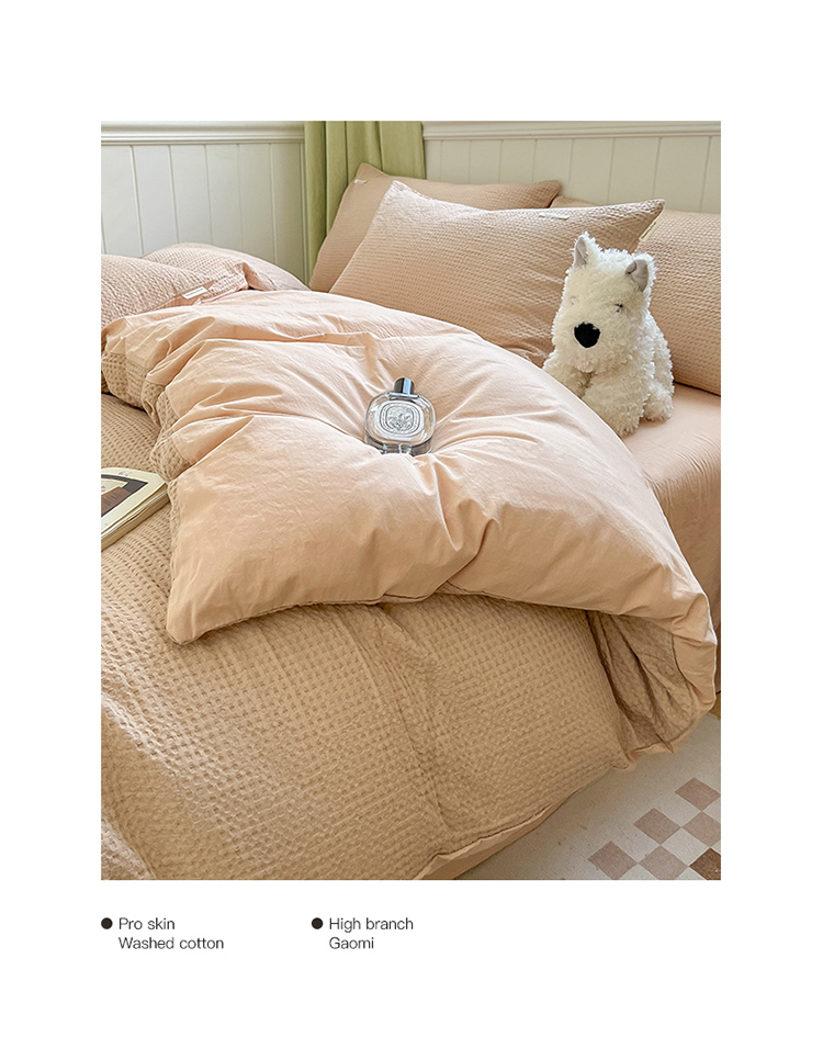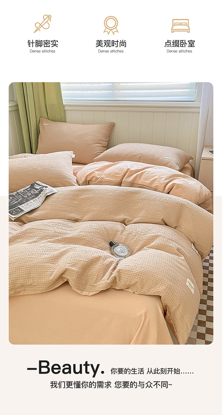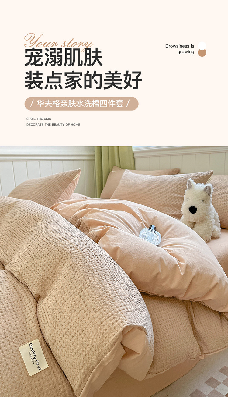 当前位置: 91家纺网 > 商品网购 > 床品套件 > 四件套 > 水洗棉四件套 > 丽美人 2023新款华夫格亲肤水洗棉四件套 华夫格-香槟