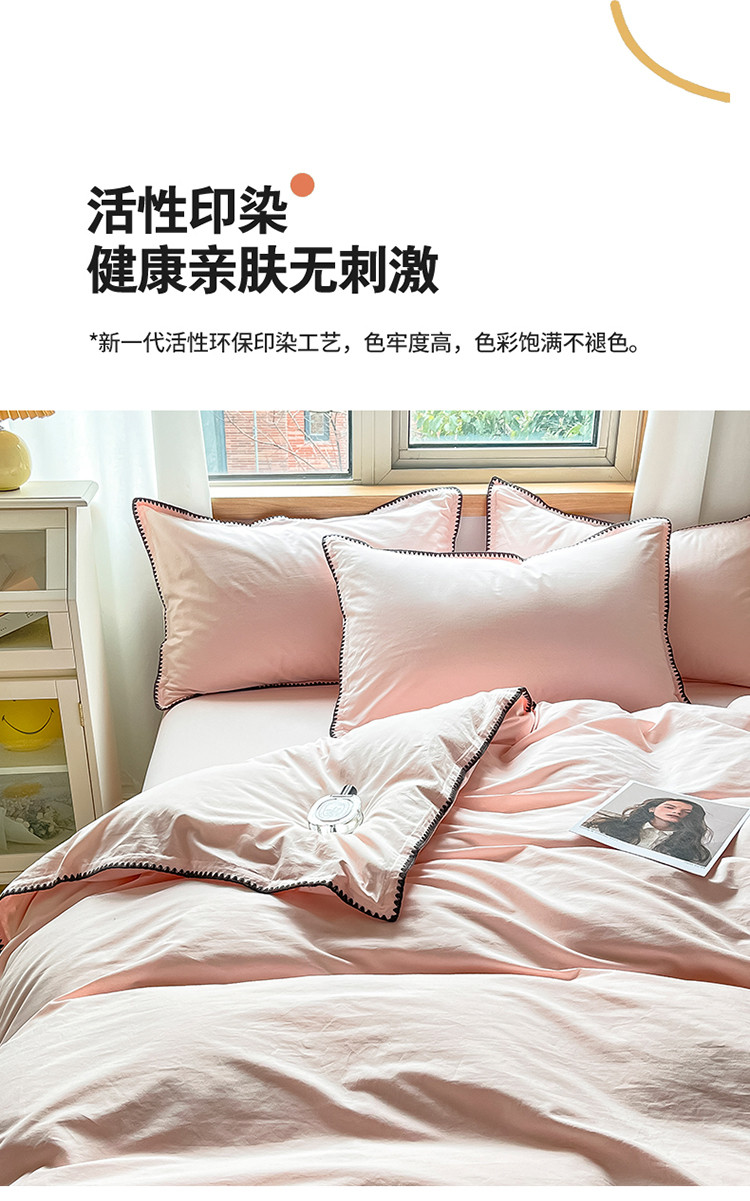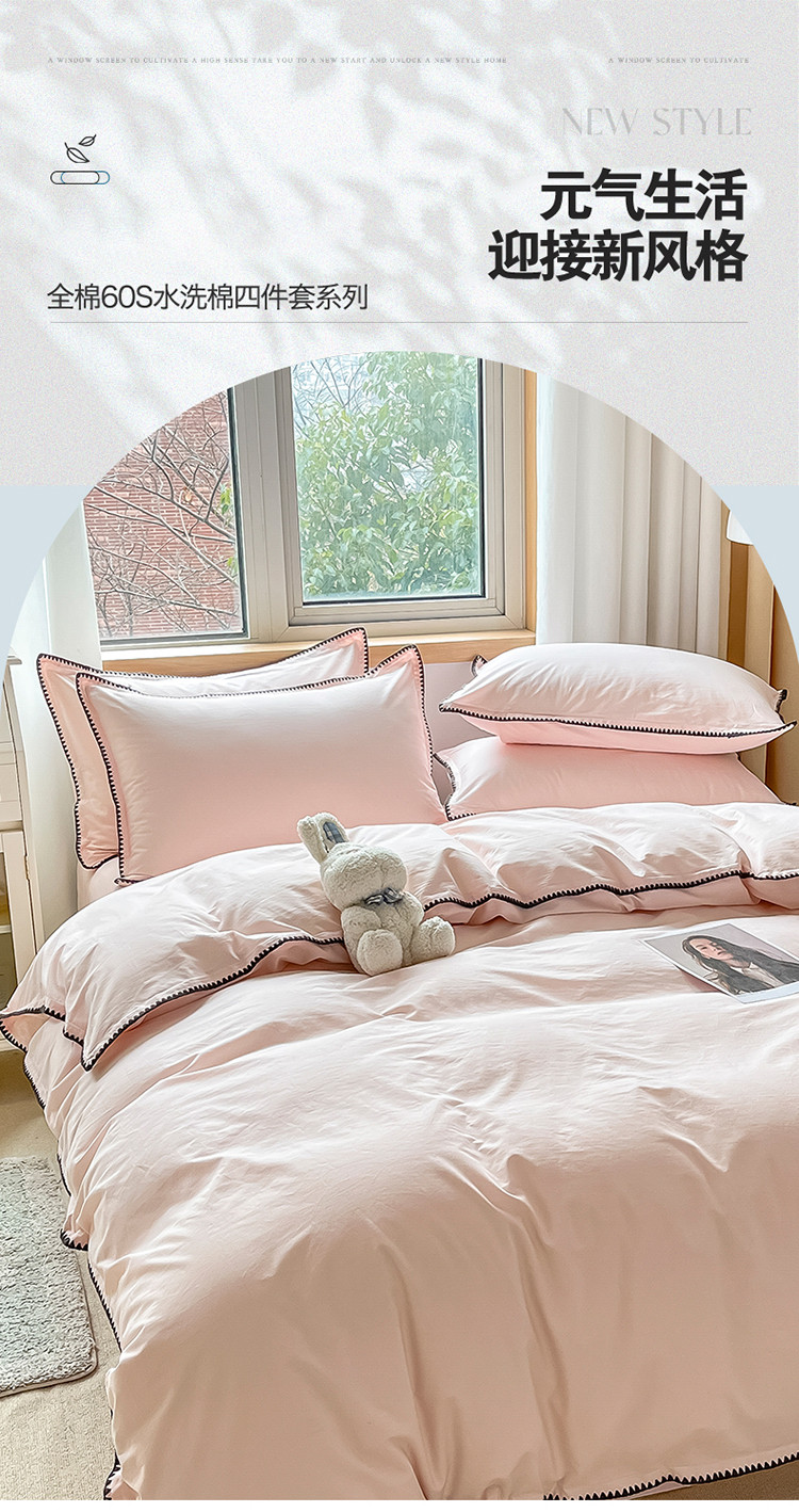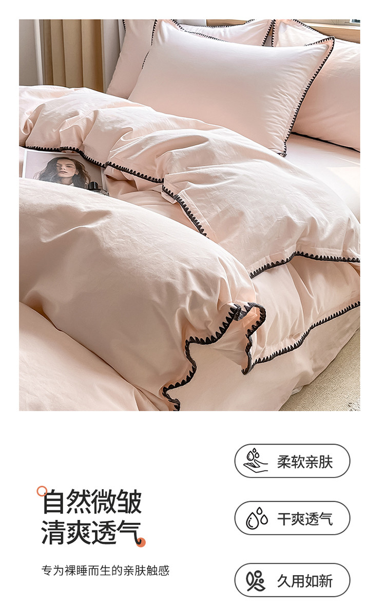 商品名称:2024无印A类全棉水洗棉贝壳针四件套 安娜贝欧-悠悠粉