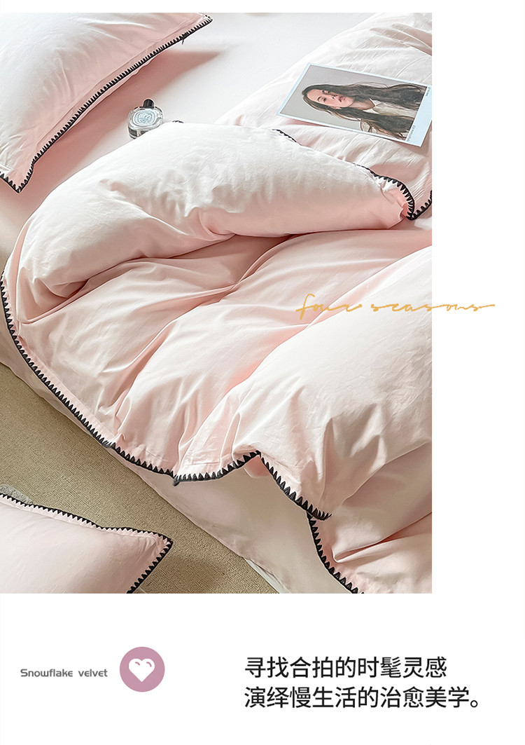 2024无印A类全棉水洗棉贝壳针四件套 安娜贝欧-悠悠粉