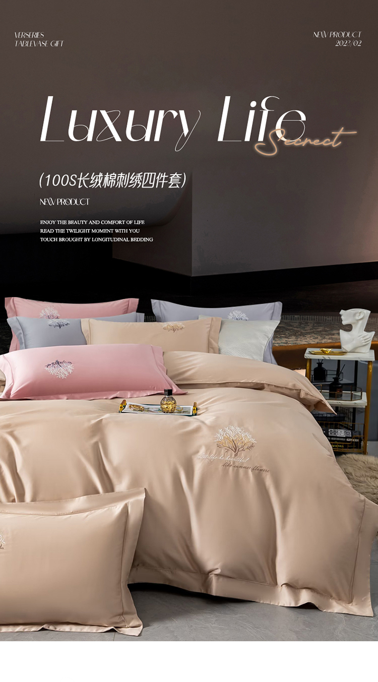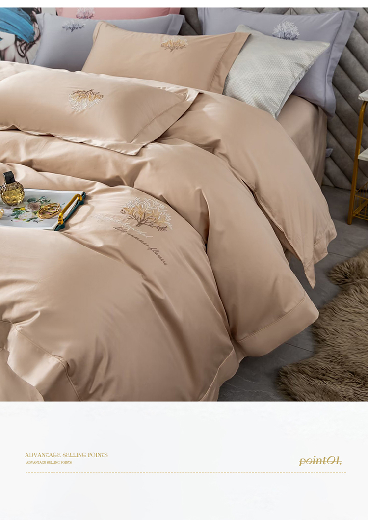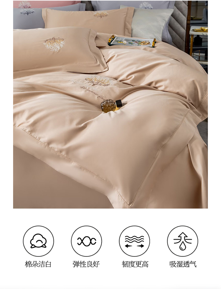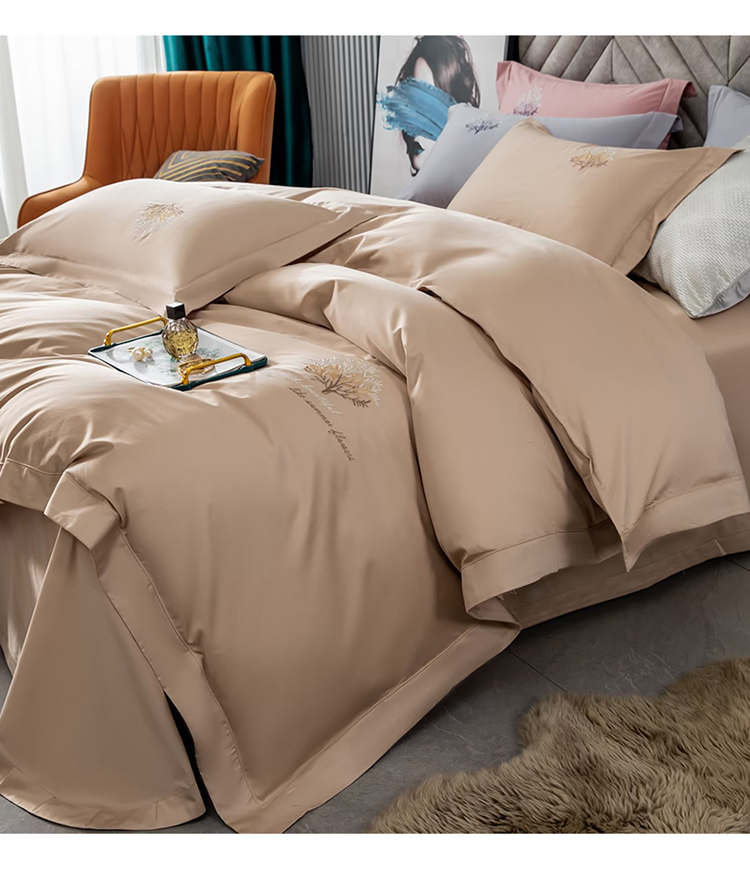 商品名称:名品优仓 2023新款高支高密长绒棉刺绣款四件套-一树花开 一树花开-驼色