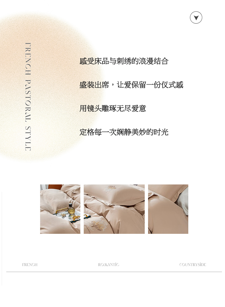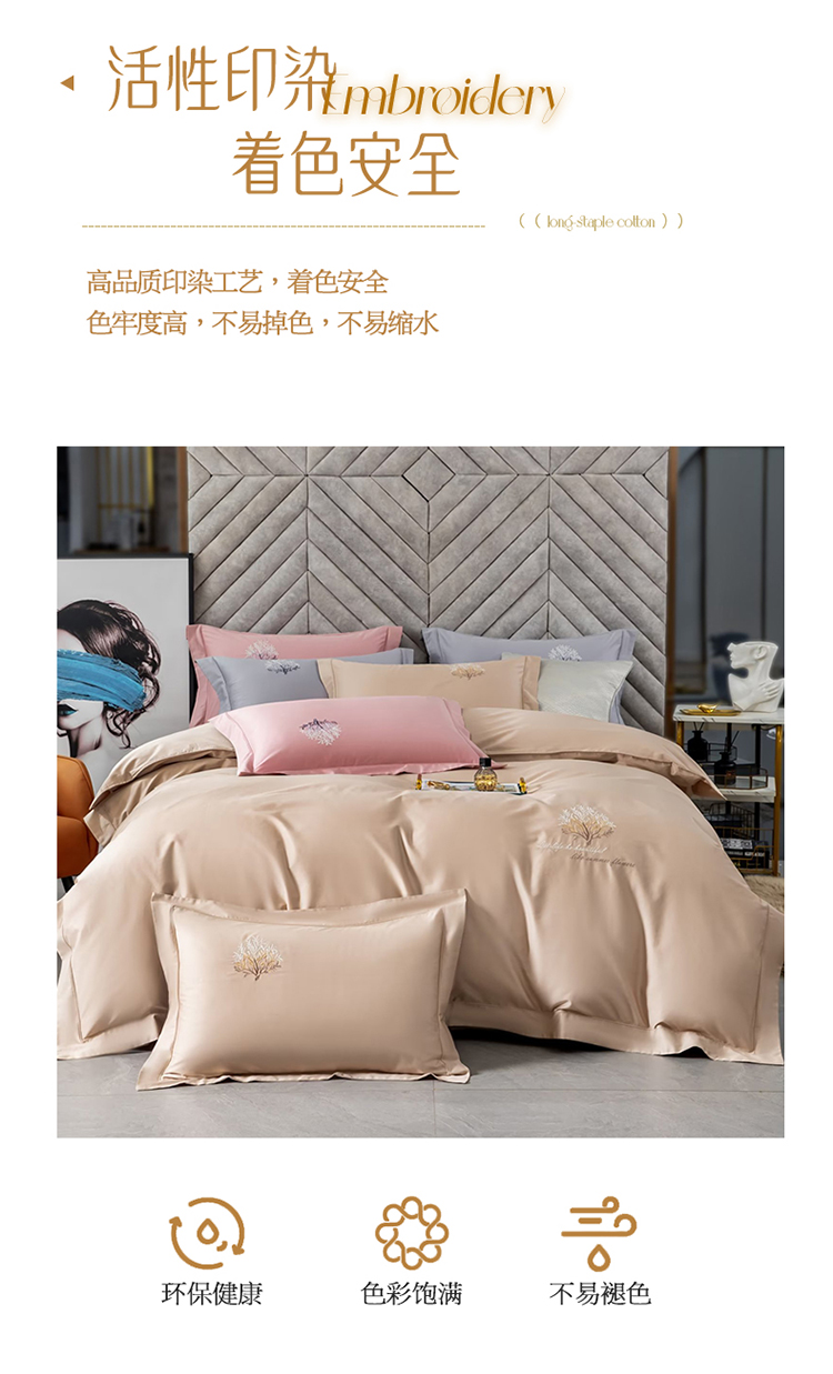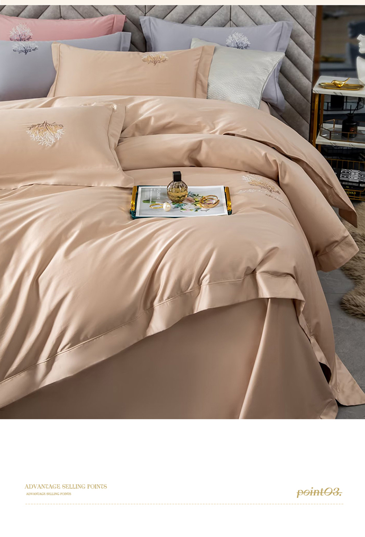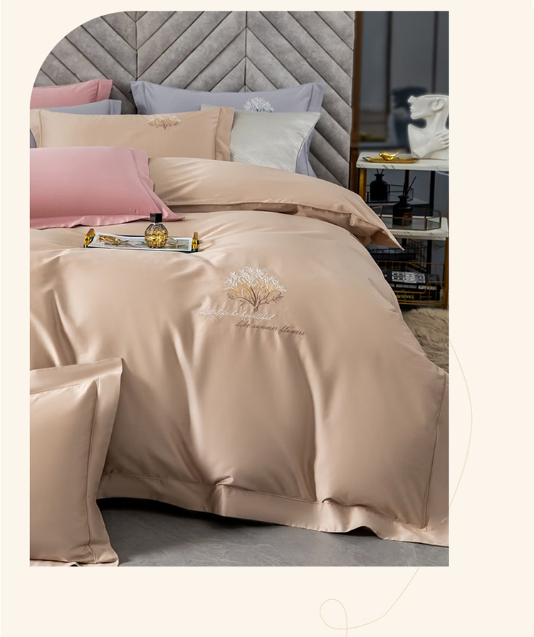 商品名称:名品优仓 2023新款高支高密长绒棉刺绣款四件套-一树花开 一树花开-驼色
