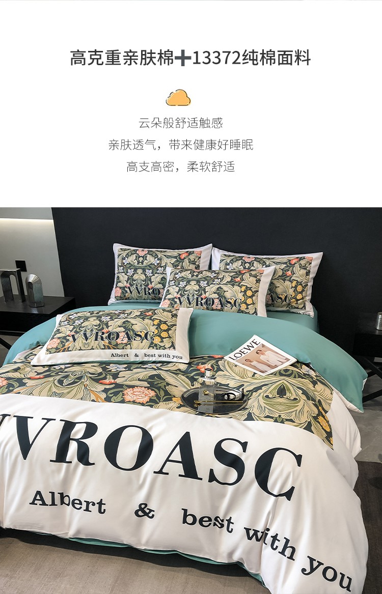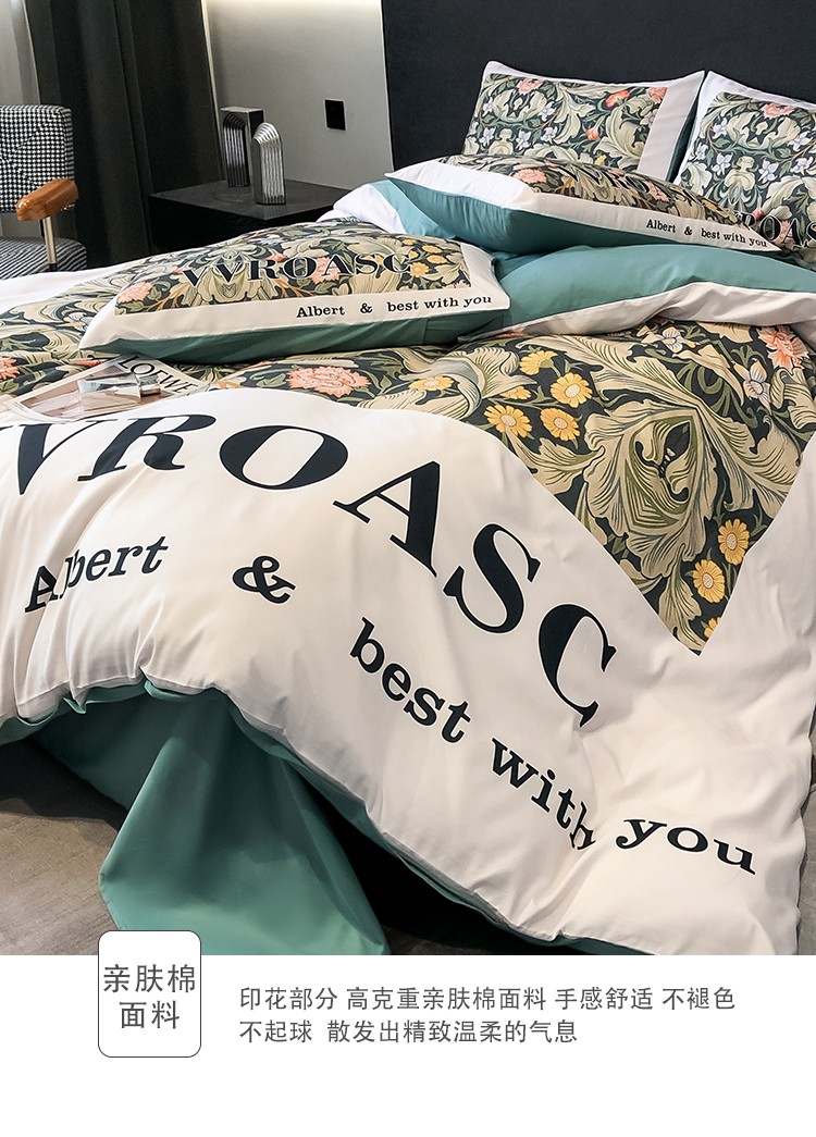当前位置: 91家纺网 > 商品网购 > 床品套件 > 四件套 > 全棉普通四件套 > 色鬼布艺 2023新款13376纯棉潮牌床单床笠款四件套 轻奢繁花