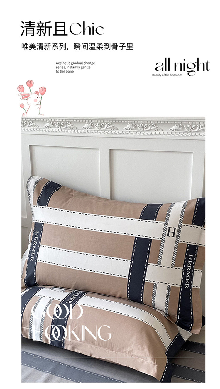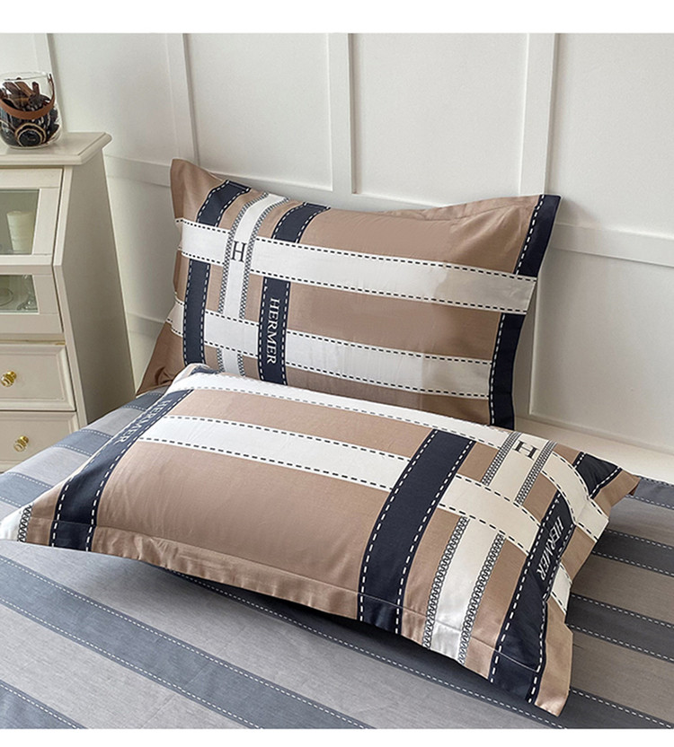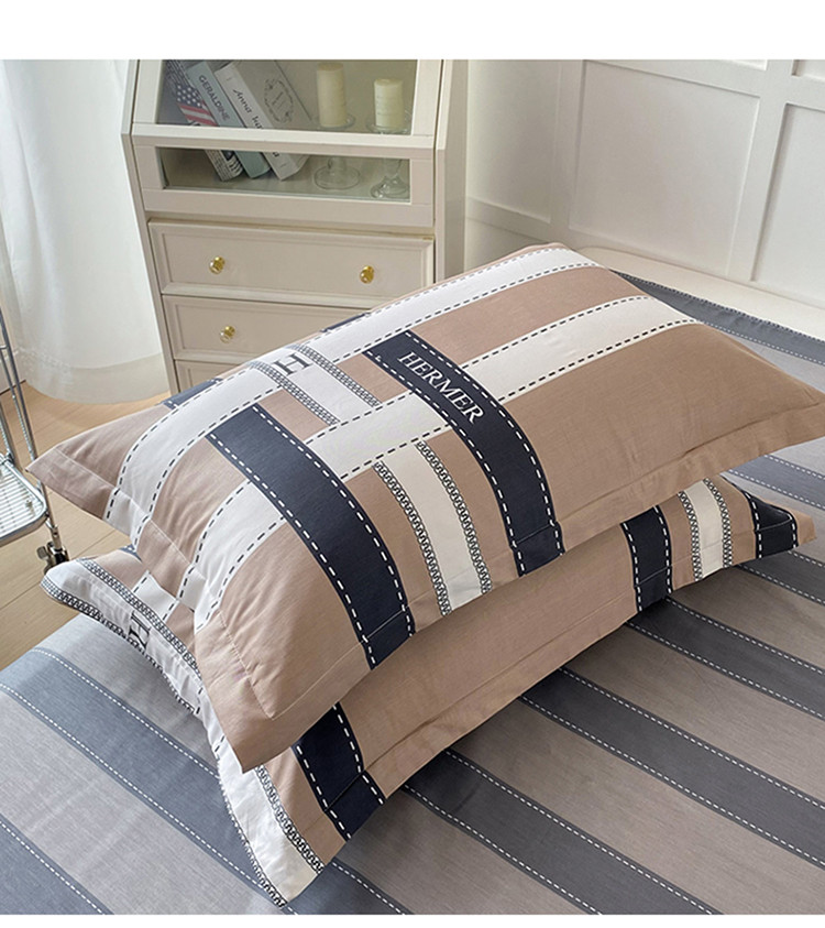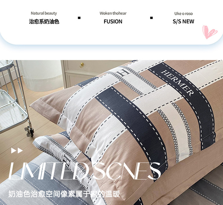 商品名称:帛织澜 2025新款全棉喷气12868系列纯棉枕套 格调印象-咖