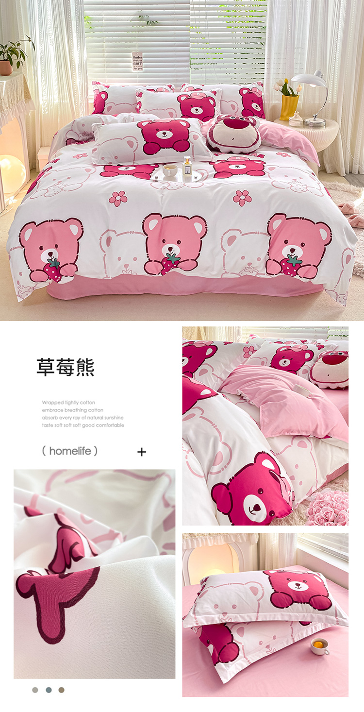 漫仙阁家纺 2024新款芦荟棉四件套 草莓熊