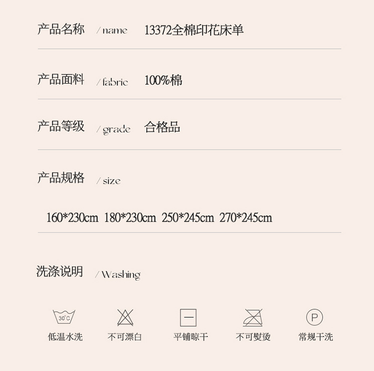180*230cm单床单(48*74cm枕套一对) | ¥50.00 |
