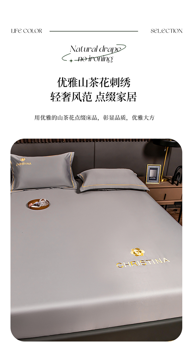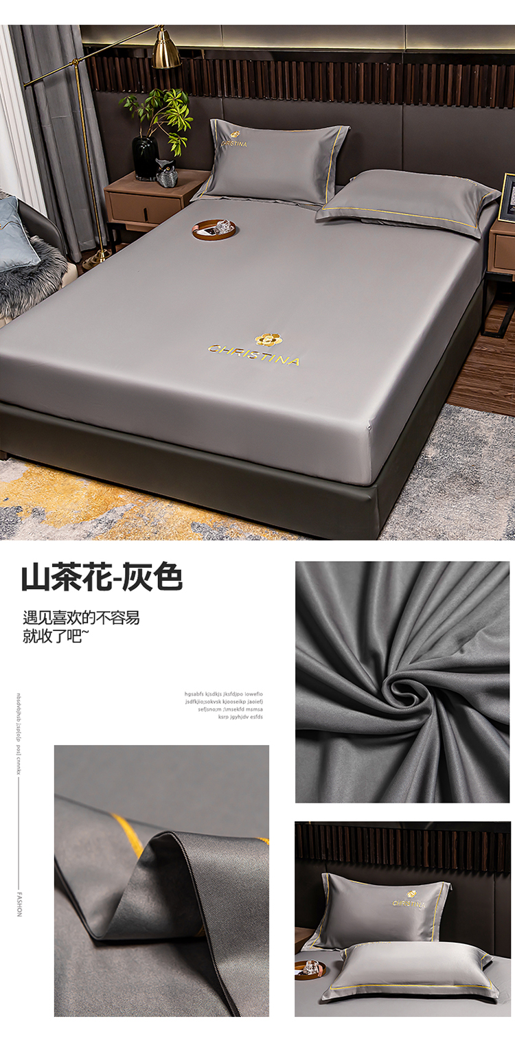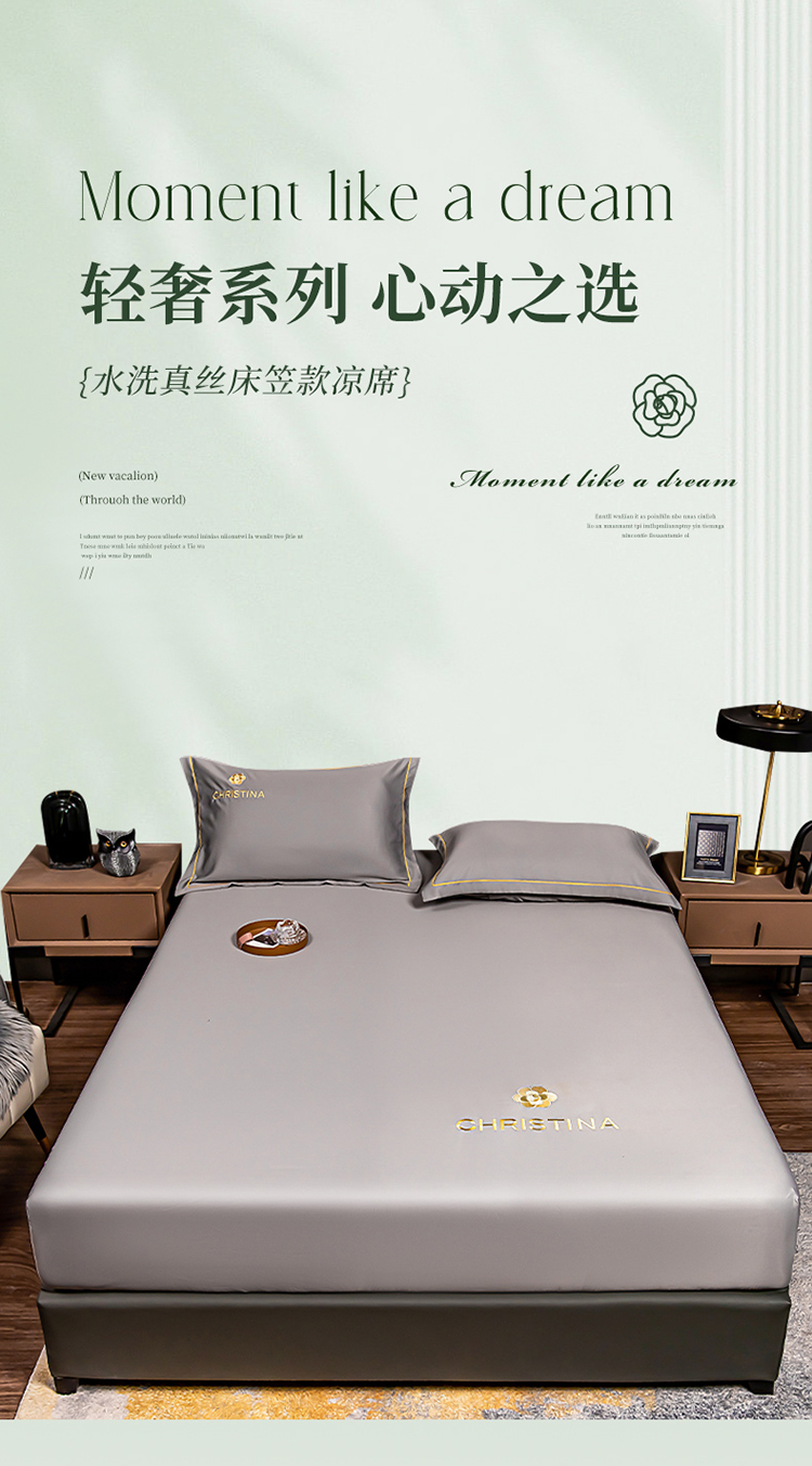 商品名称:丽美人 2023新款水洗真丝床笠款凉席山茶花系列 山茶花-灰色