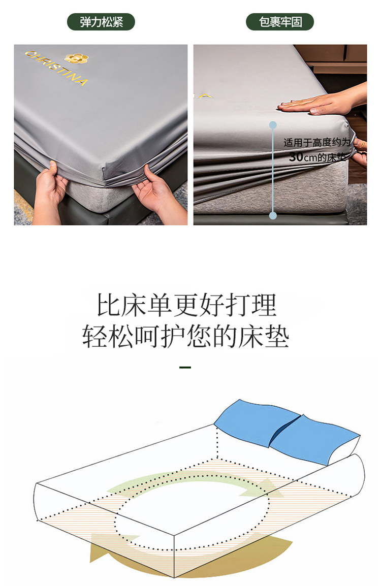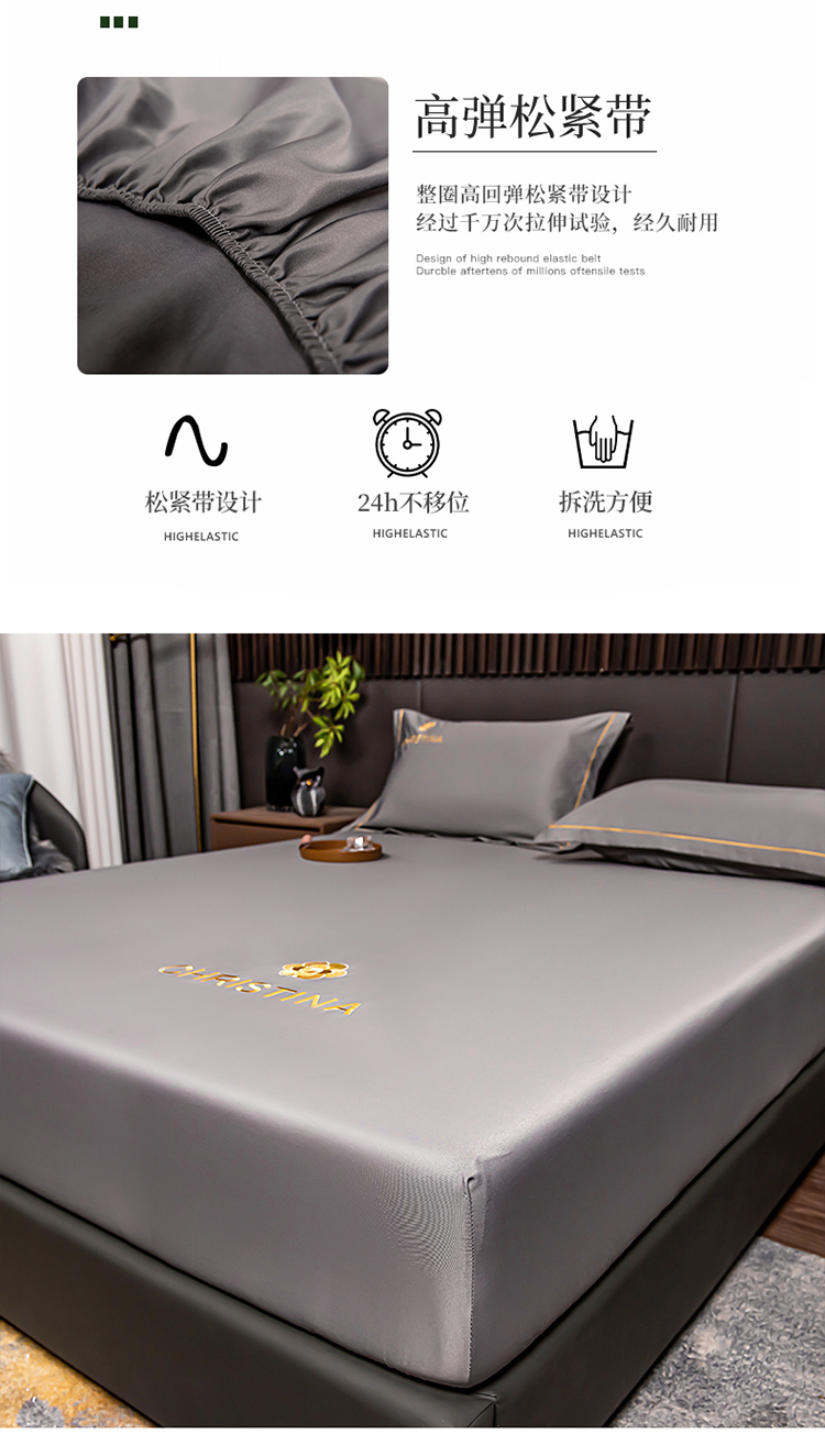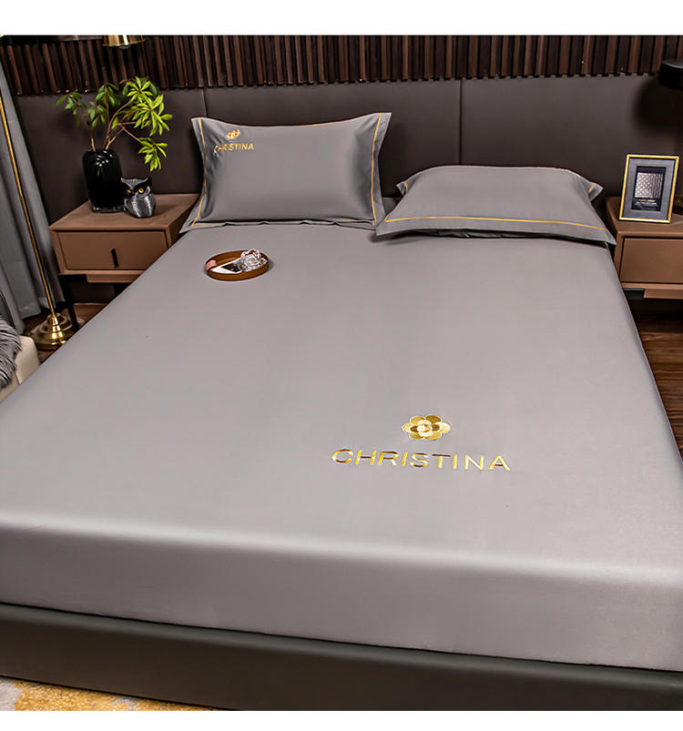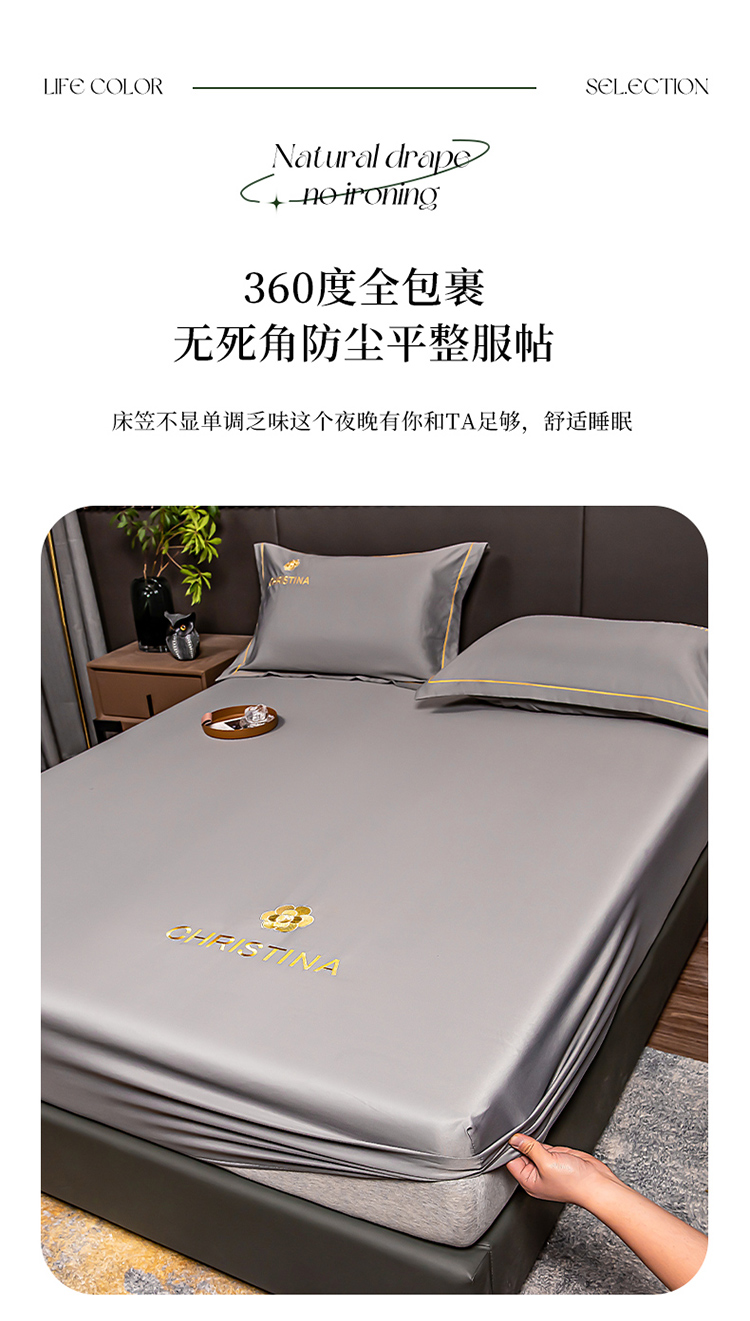 商品名称:丽美人 2023新款水洗真丝床笠款凉席山茶花系列 山茶花-灰色