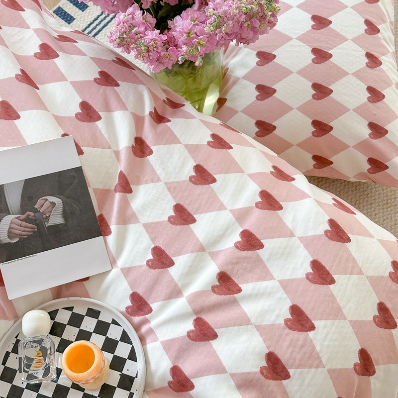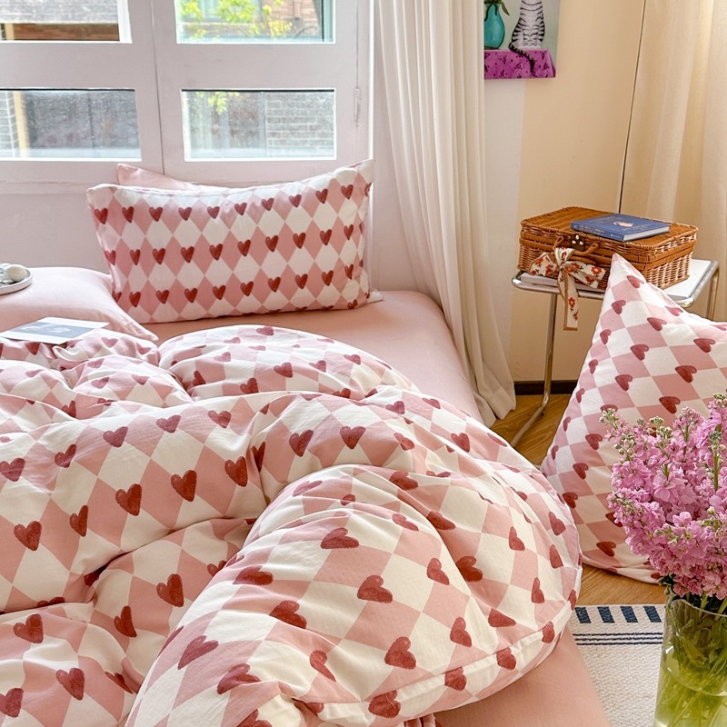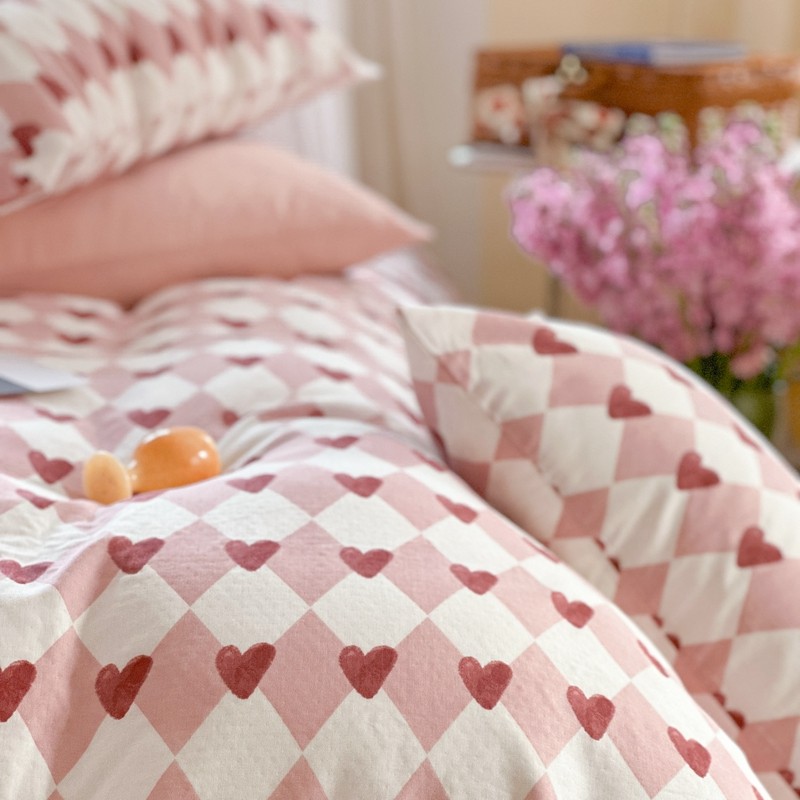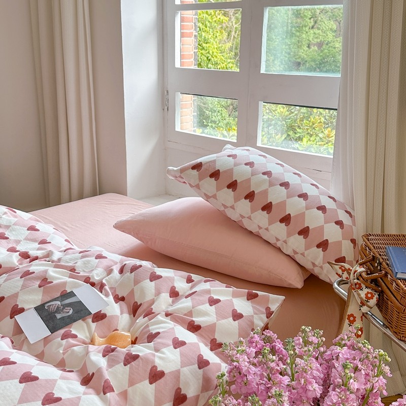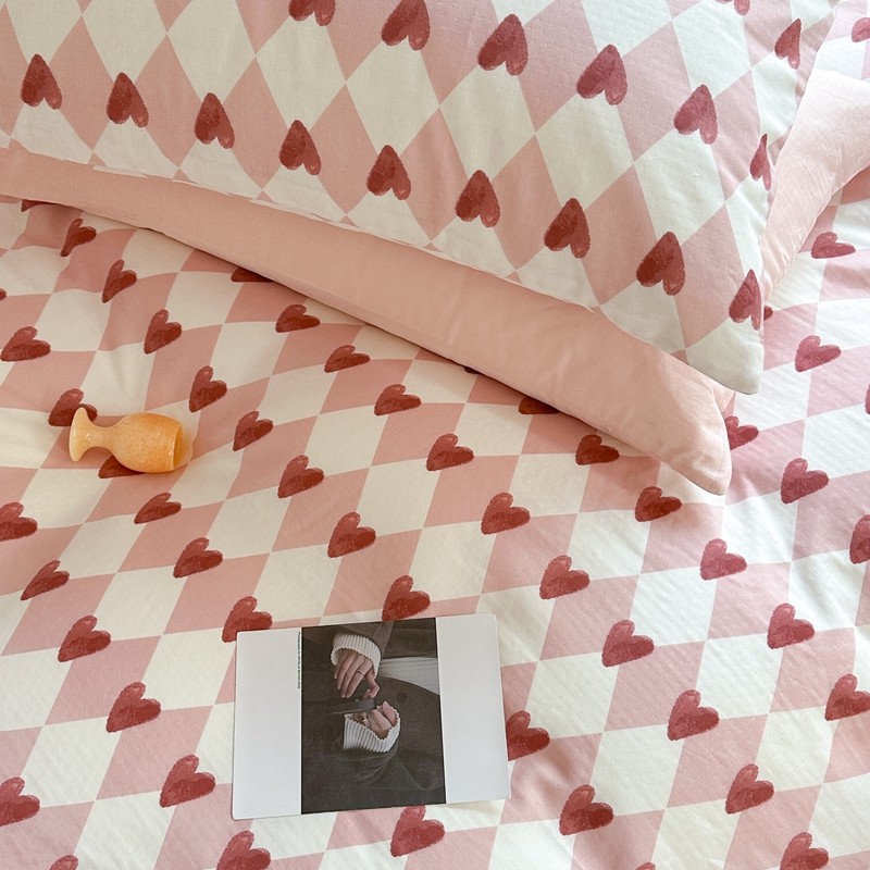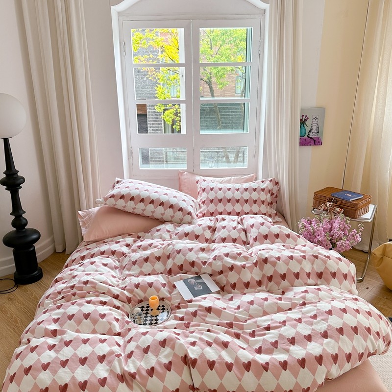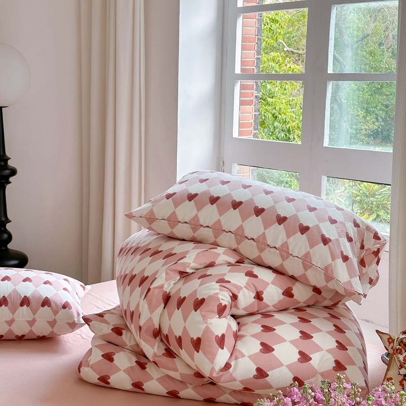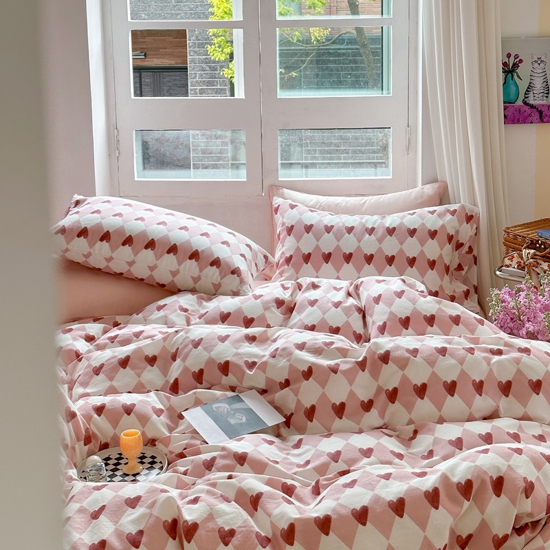 时年 2023新款全棉母婴级有氧双层纱夏被四件套 菱心格