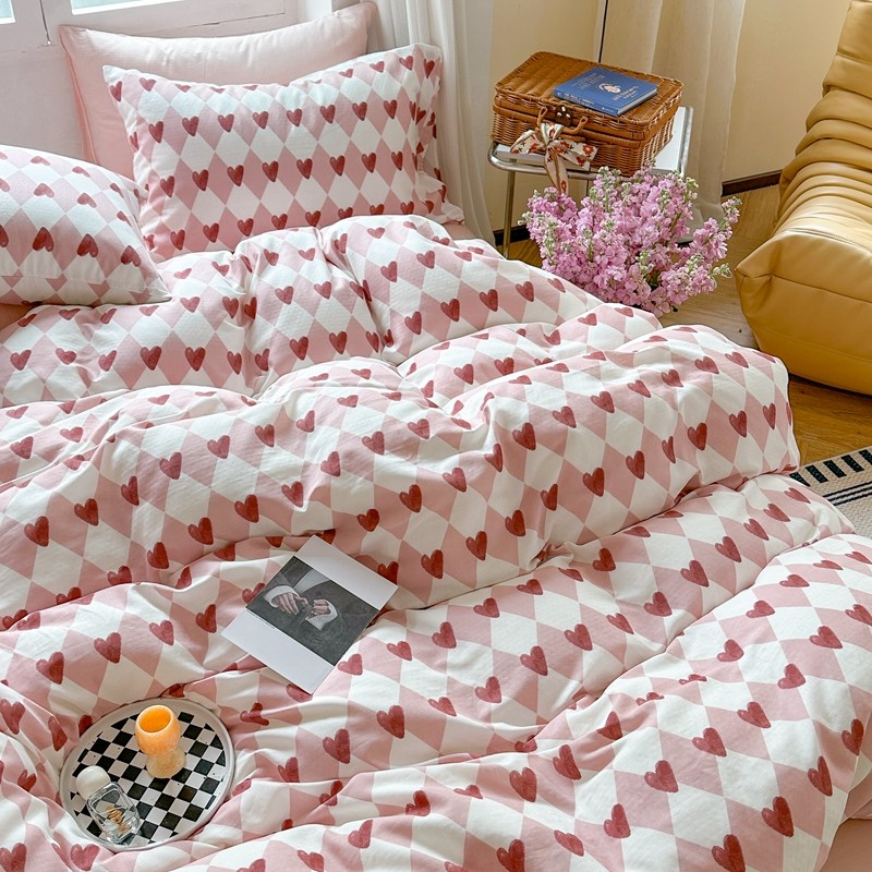 商品名称:时年 2023新款全棉母婴级有氧双层纱夏被四件套 菱心格