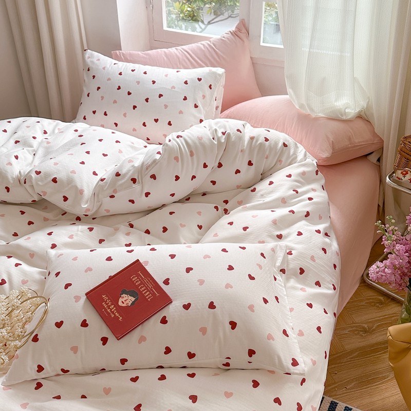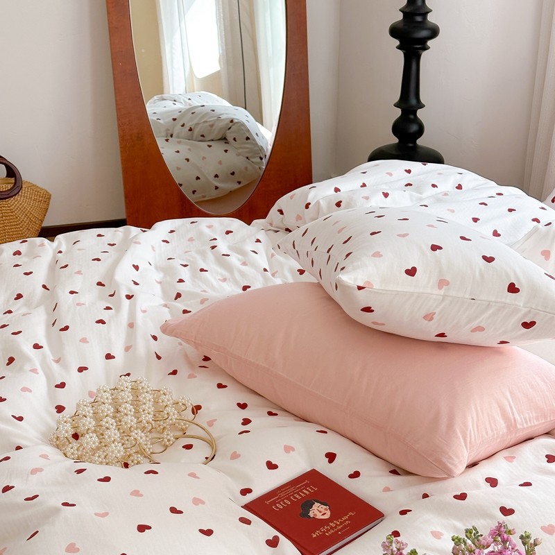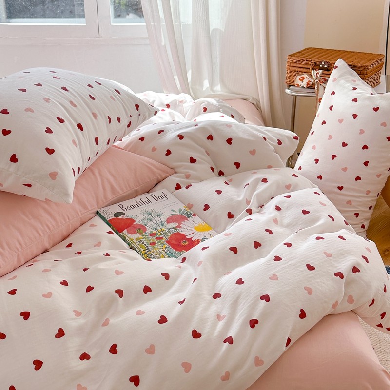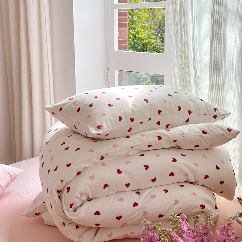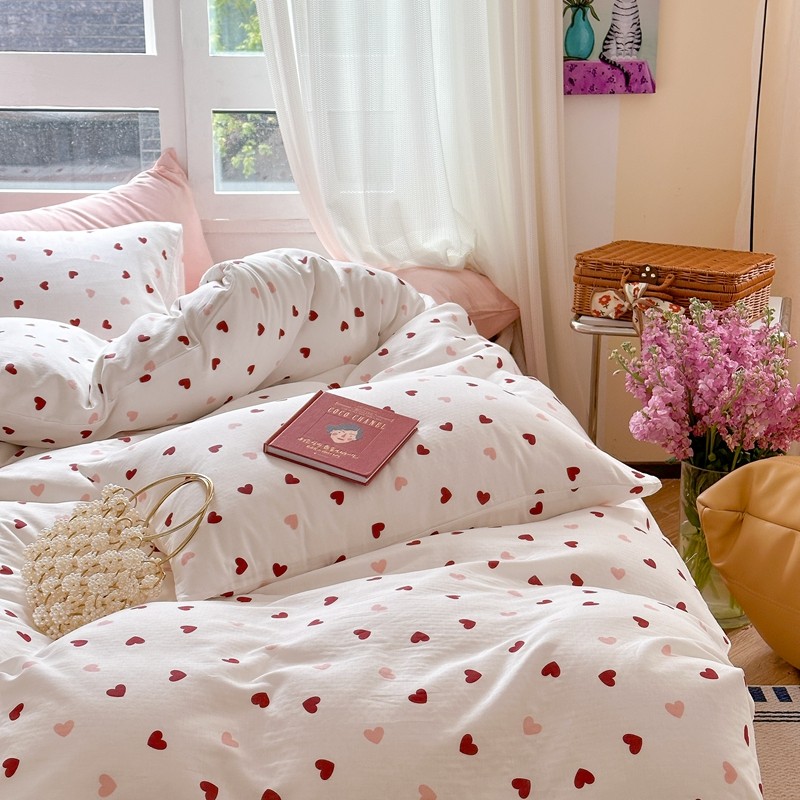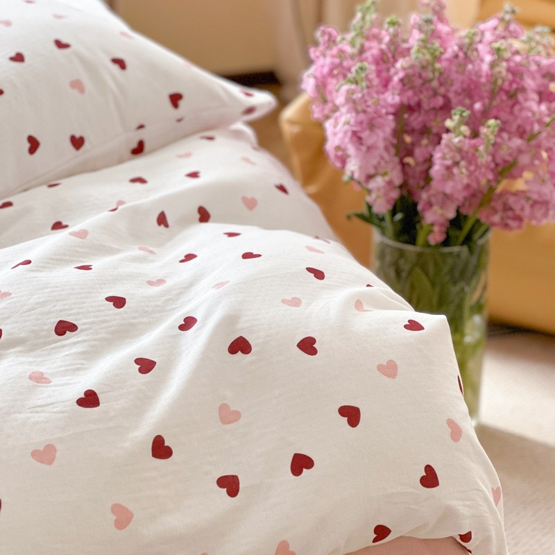 商品名称:时年 2023新款全棉母婴级有氧双层纱夏被四件套 小红心