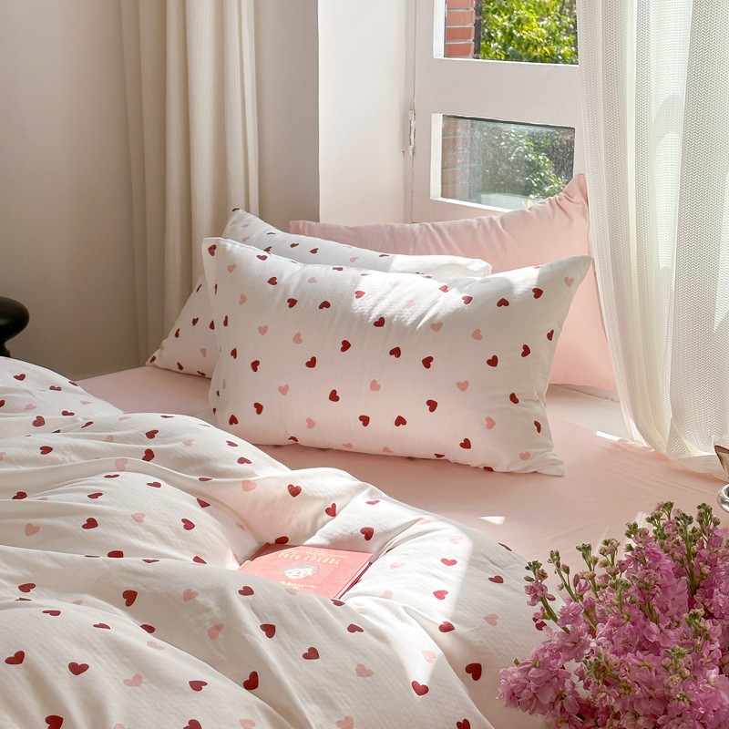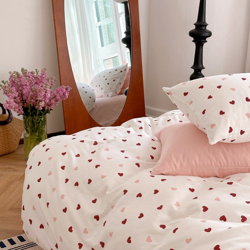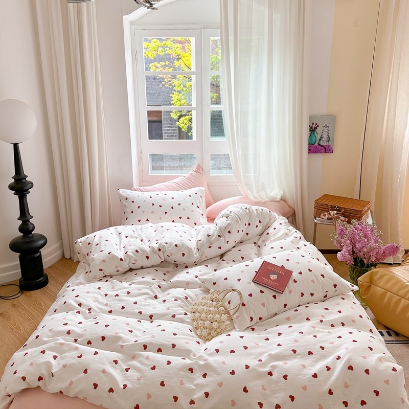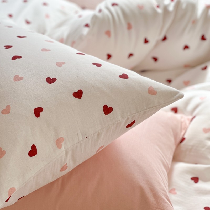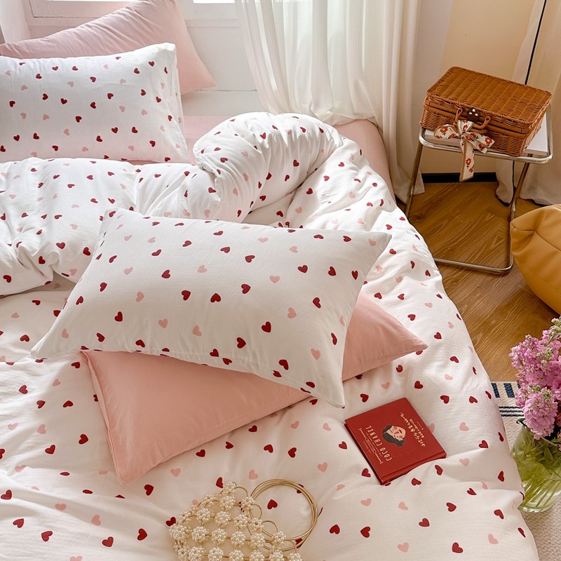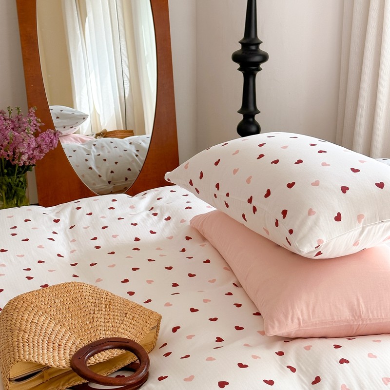 商品名称:时年 2023新款全棉母婴级有氧双层纱夏被四件套 小红心