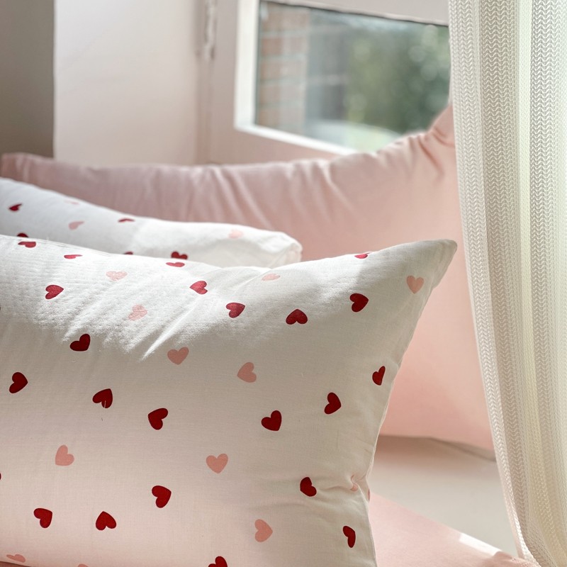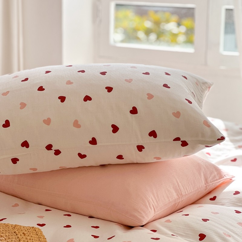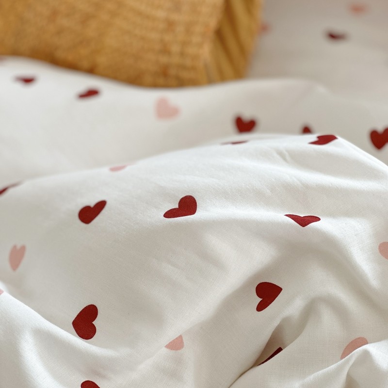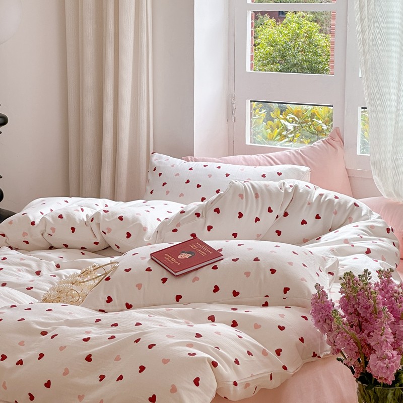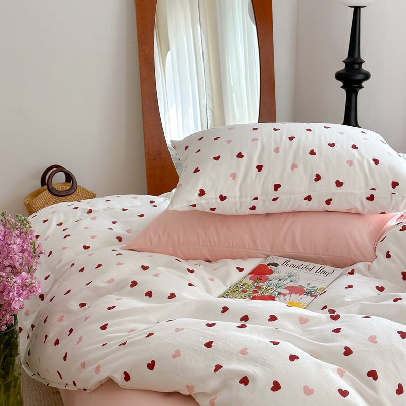 时年 2023新款全棉母婴级有氧双层纱夏被四件套 小红心
