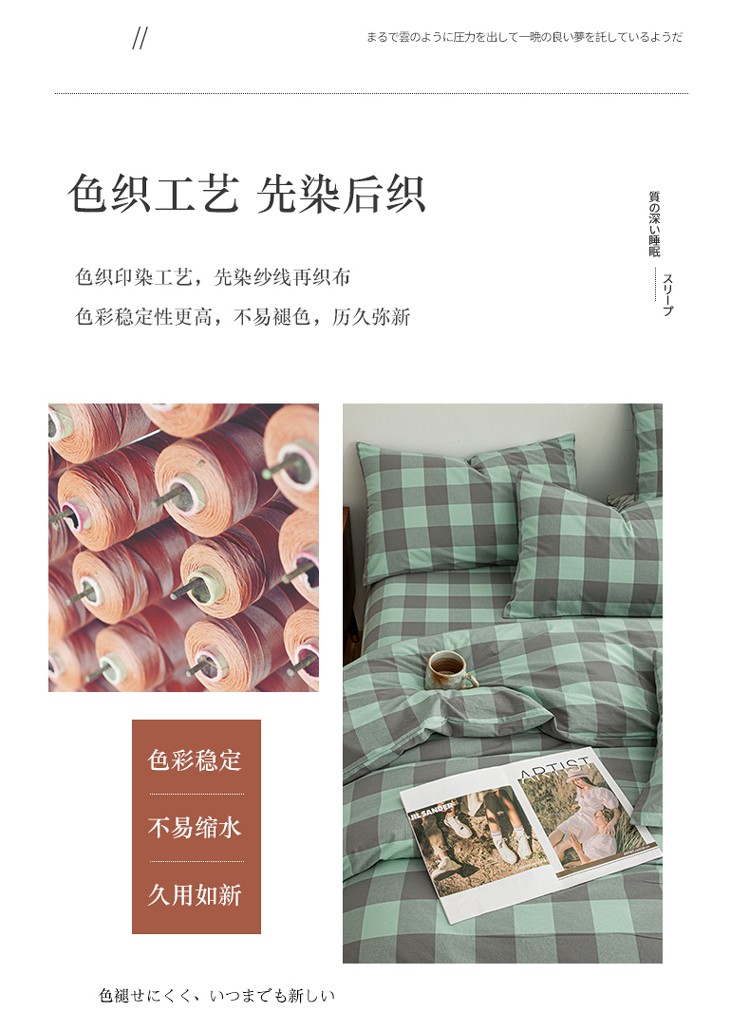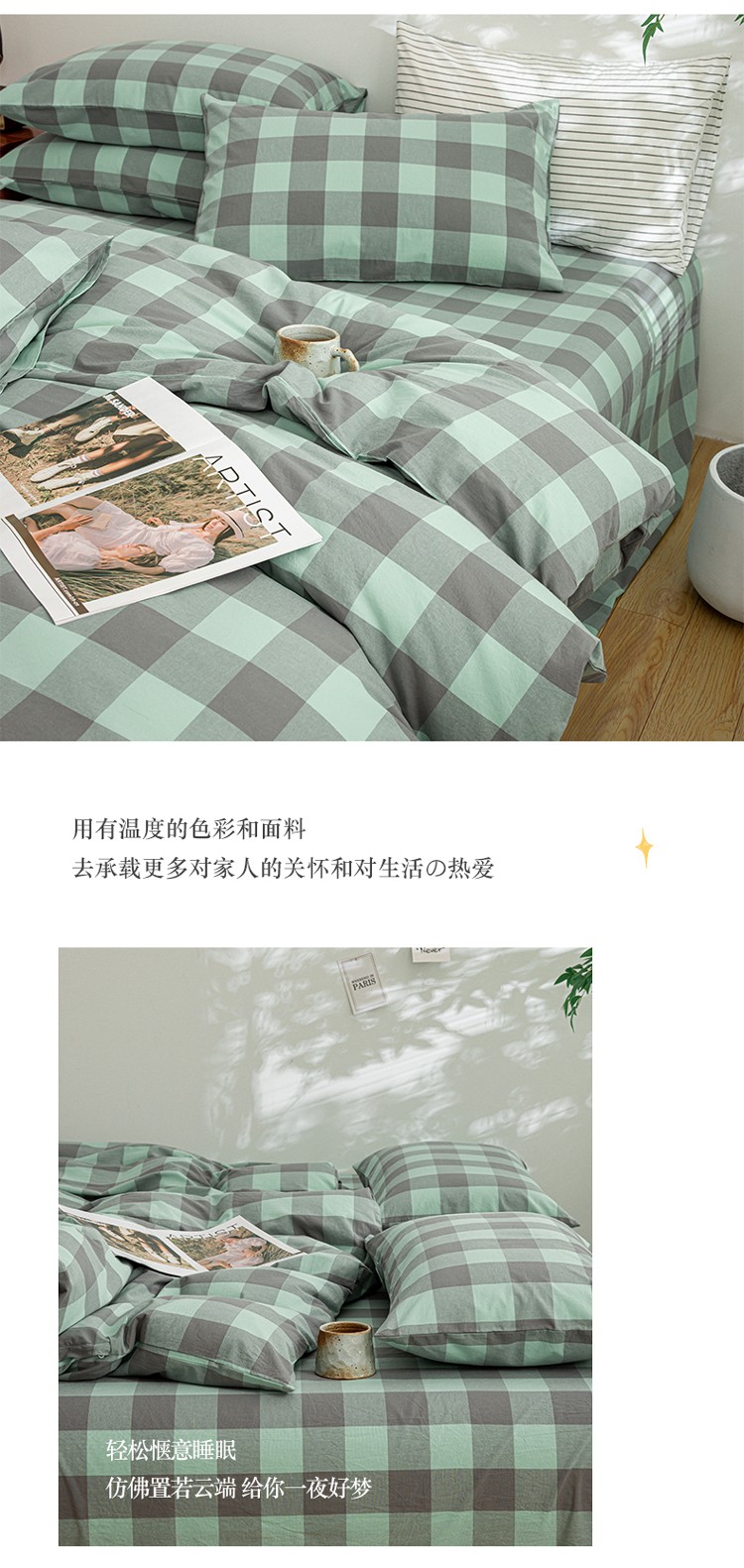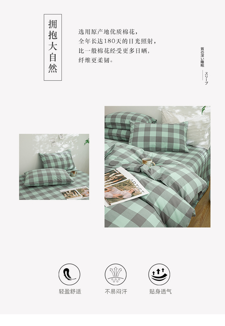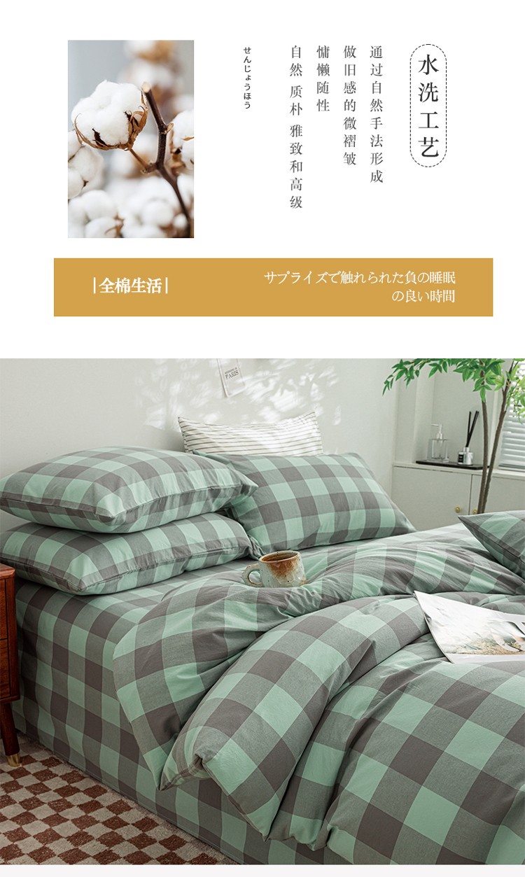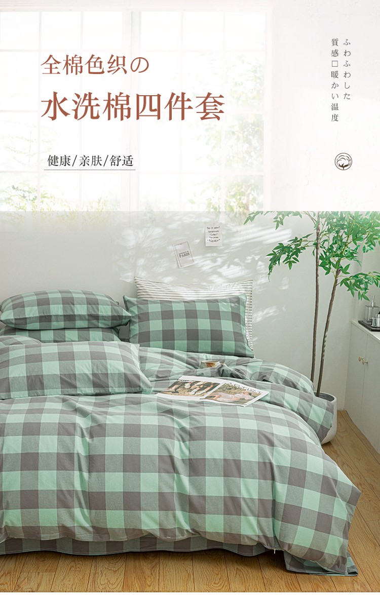 当前位置: 91家纺网 > 商品网购 > 床品套件 > 四件套 > 水洗棉四件套 > 柠萌家居 2023年新款无印风格A类全棉色织水洗棉四件套 艾伦-绿