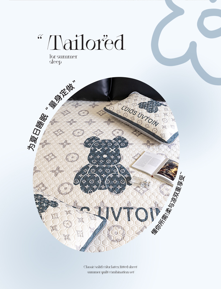 商品名称:摩卡 2024新品凉感丝床笠乳胶凉席三件套 熊仔白