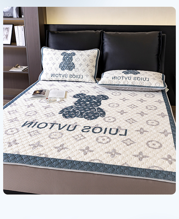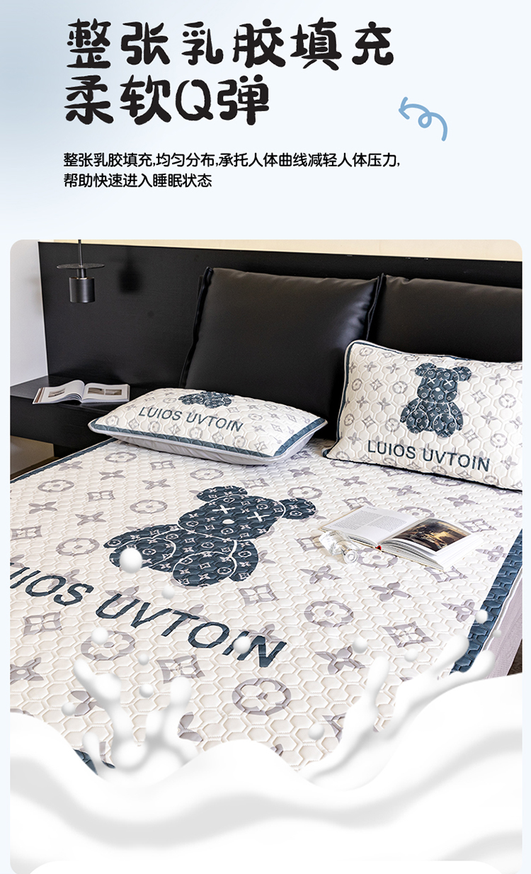 摩卡 2024新品凉感丝床笠乳胶凉席三件套 熊仔白