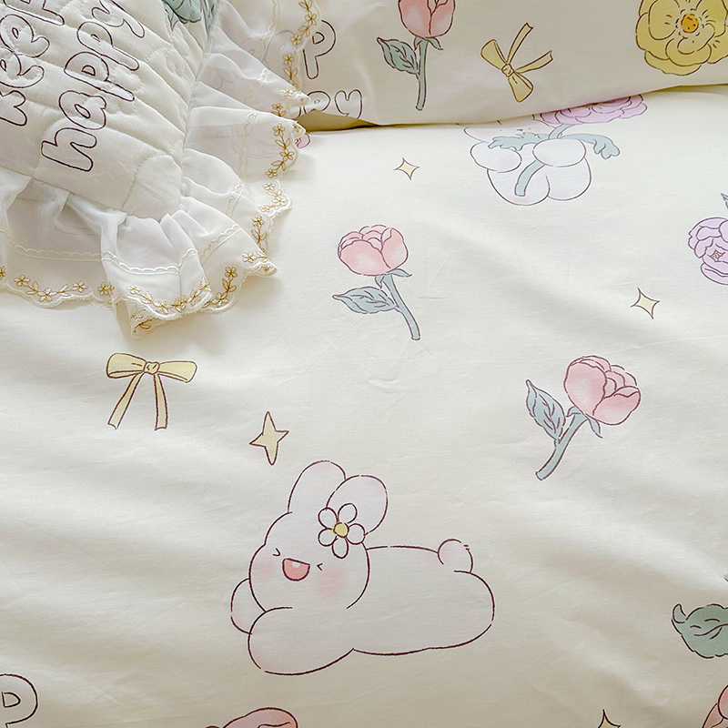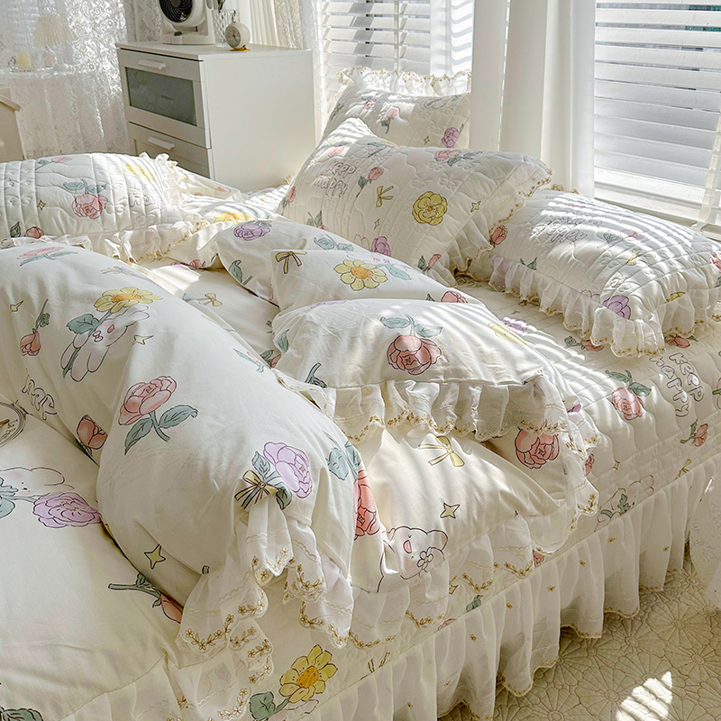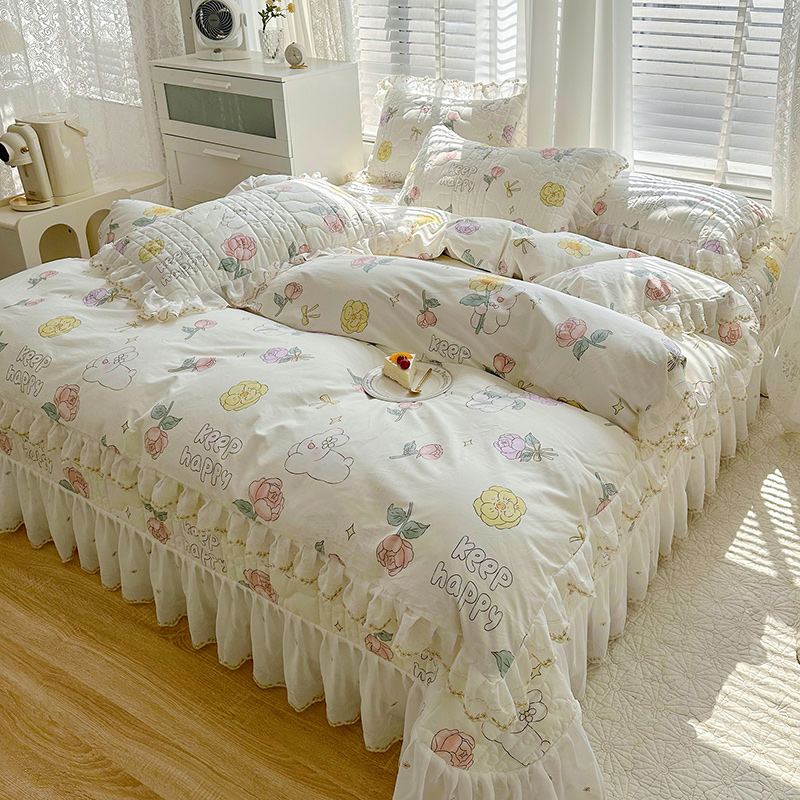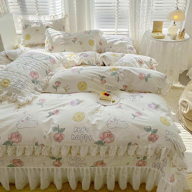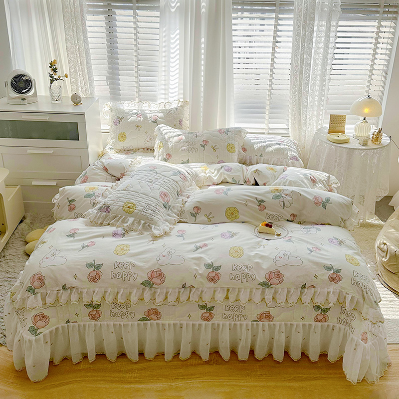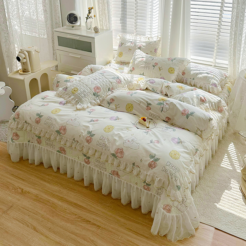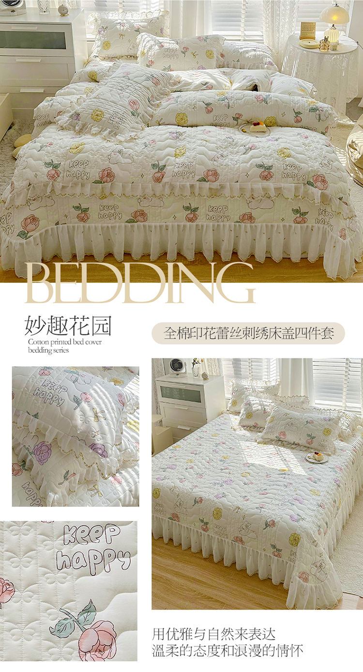 • 91家纺网 家纺一手货源 找家纺 宜凡 2023新款全棉蕾丝刺绣床盖四件套(单层被套) 妙趣花园