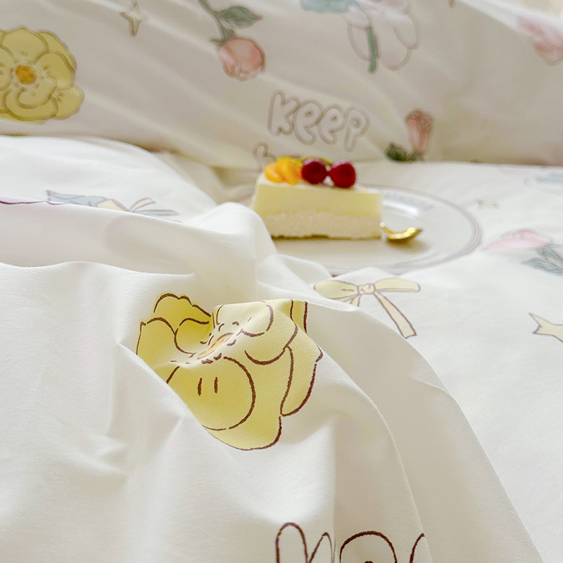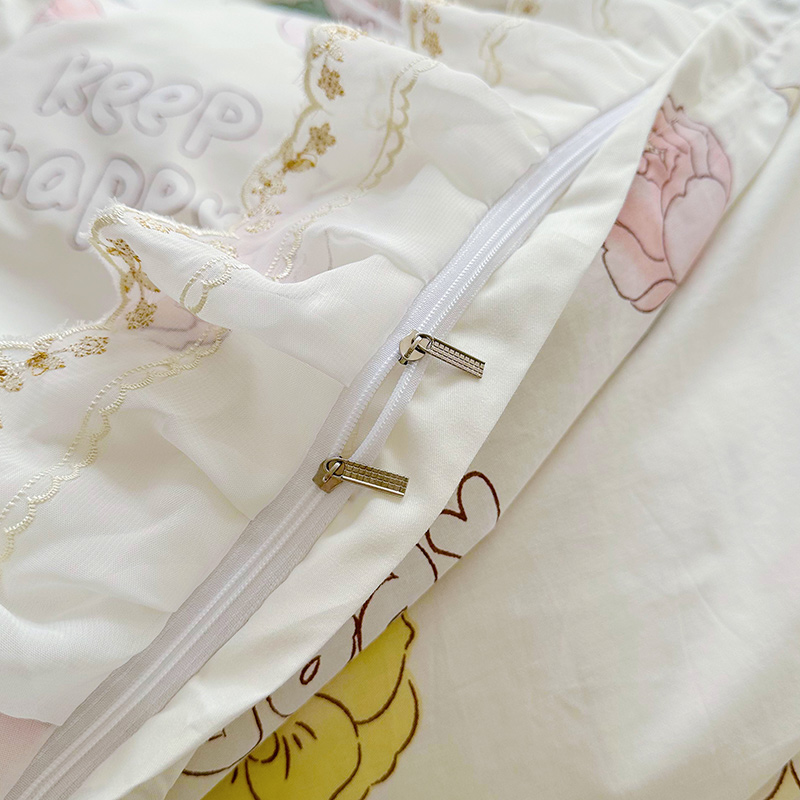 宜凡 2023新款全棉蕾丝刺绣床盖四件套(单层被套) 妙趣花园