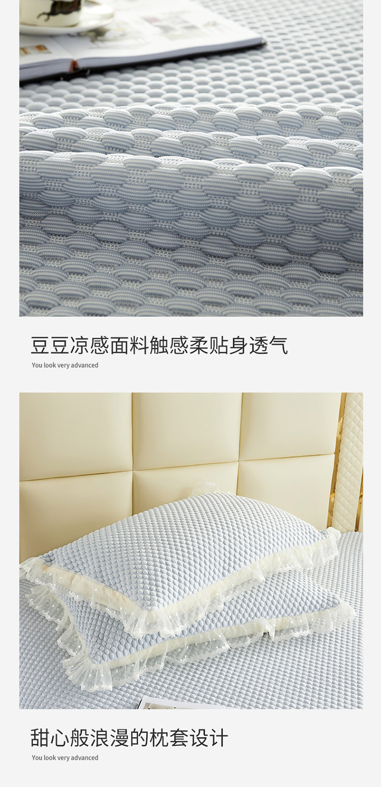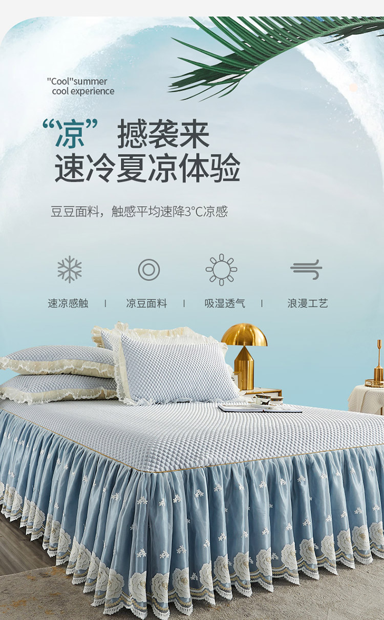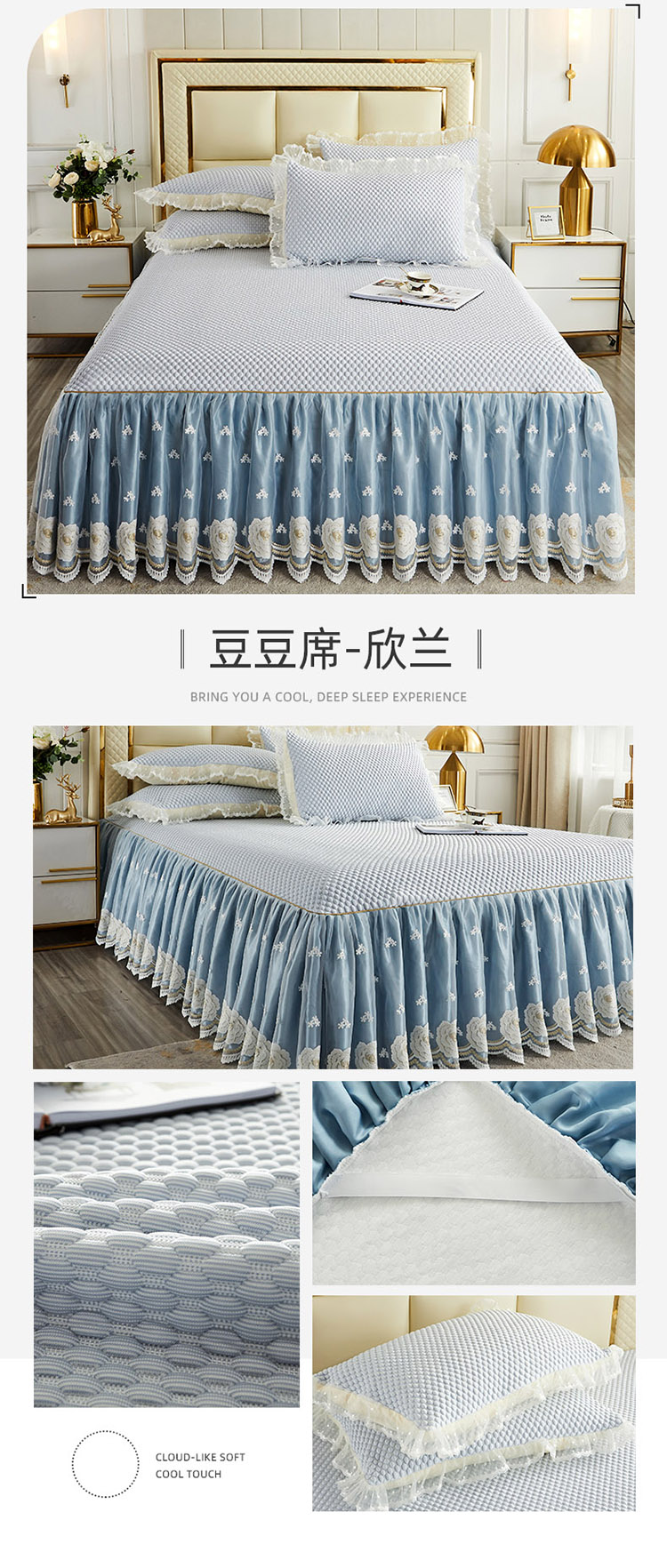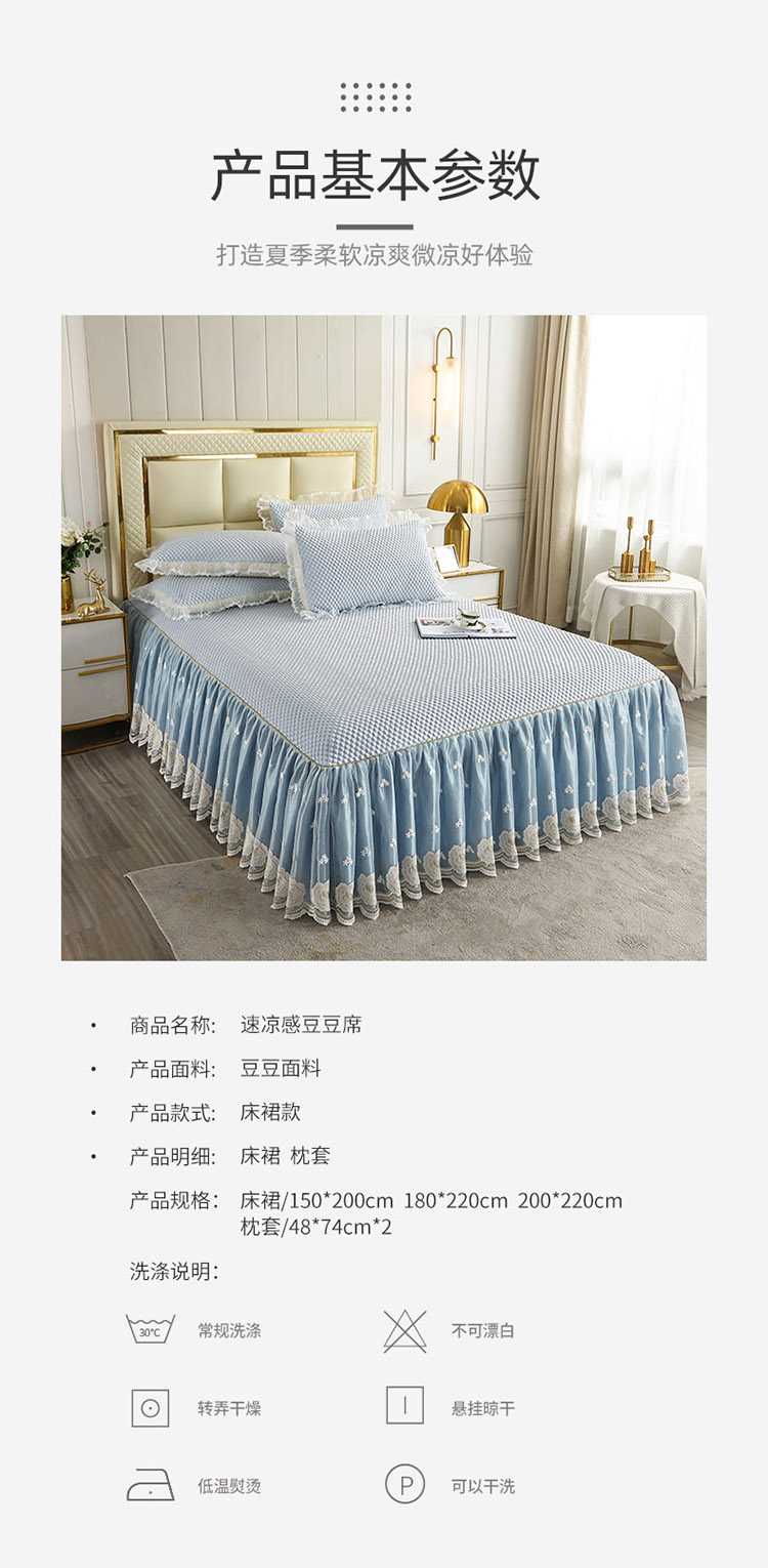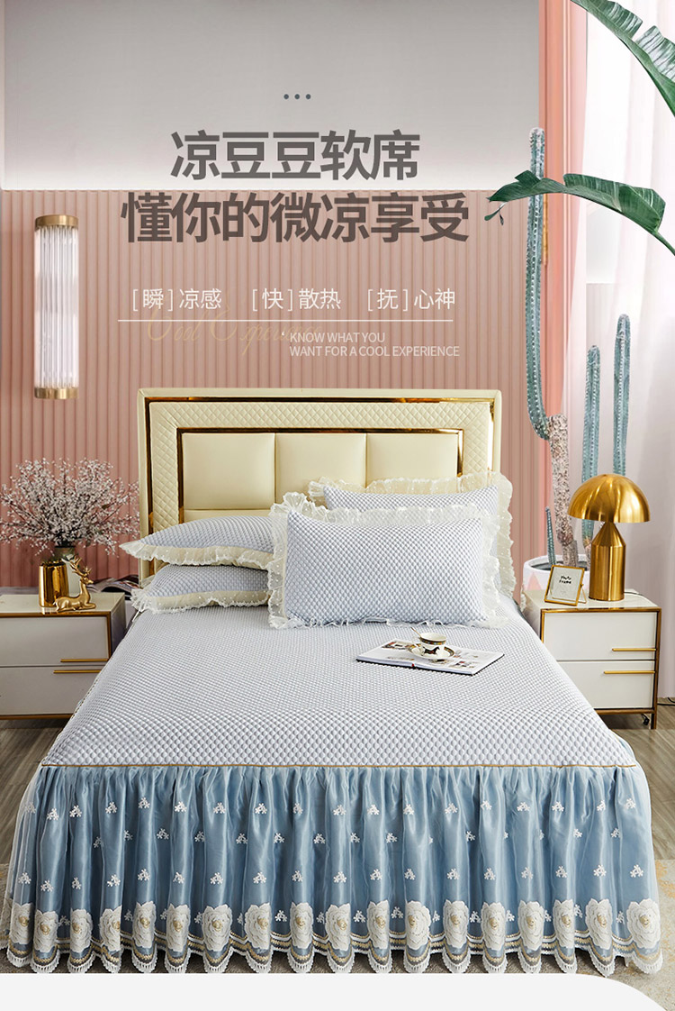 商品名称:恋尚 2023新款凉豆豆软凉席床裙款三件套 欣兰