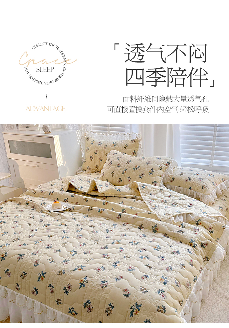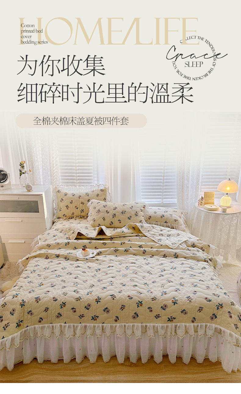 当前位置: 91家纺网 > 商品网购 > 床品套件 > 四件套 > 夏被四件套 > 宜凡家纺 全棉床盖夏被四件套 初见繁花