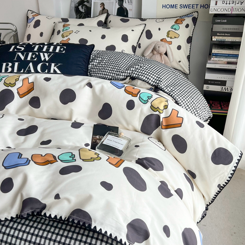 当前位置: 91家纺网 > 商品网购 > 床品套件 > 四件套 > 全棉普通四件套 > HL原创2023新款贝壳边全棉四件套 斑点色彩