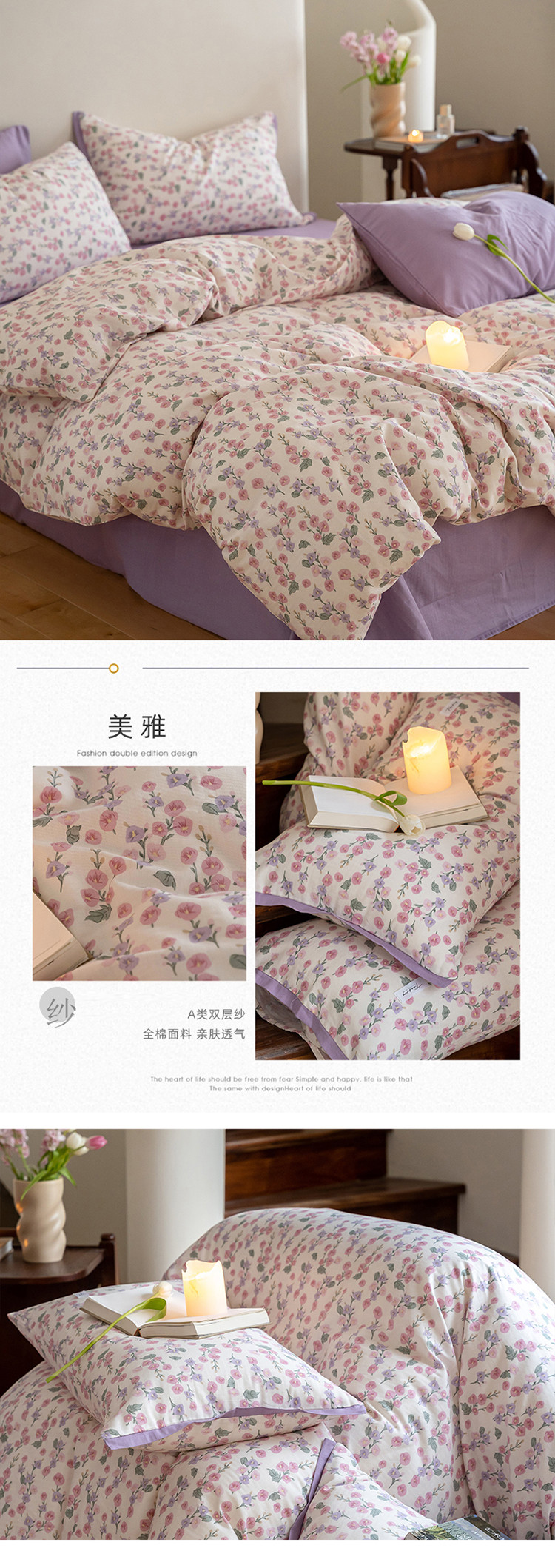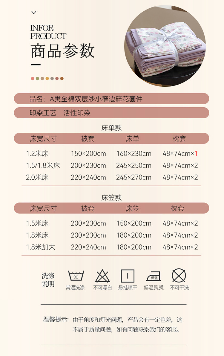 当前位置: 91家纺网 > 商品网购 > 床品套件 > 四件套 > 全棉普通四件套 > 2023时光里 春夏A类双层纱 四件套 美雅