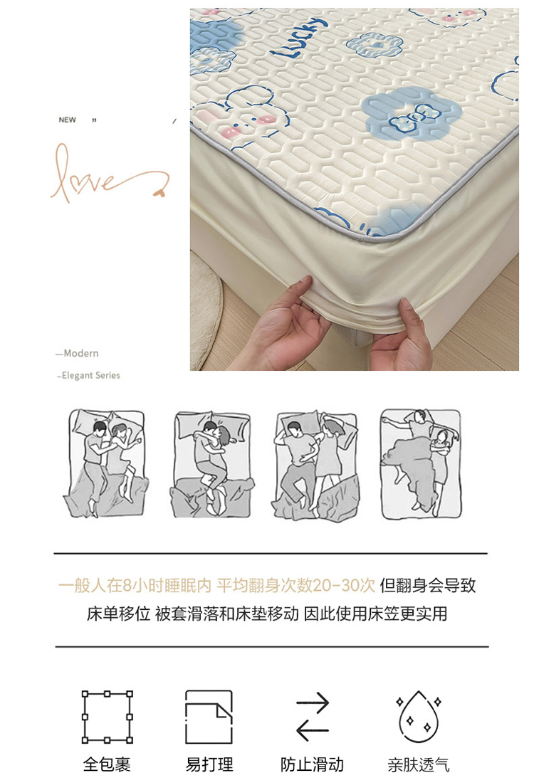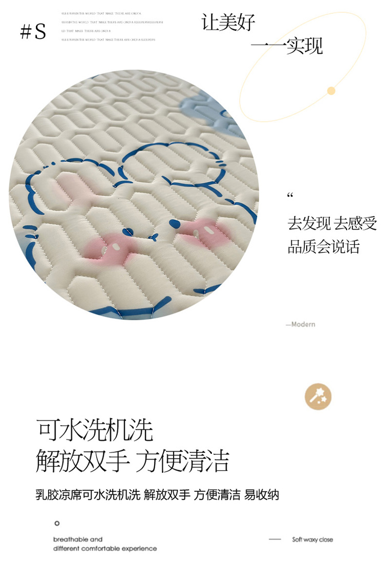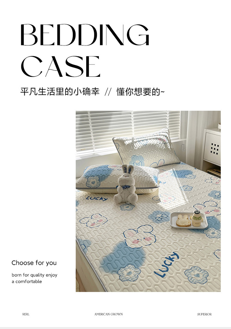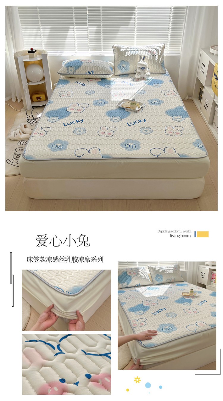 商品名称:沐慕 2023新款小清新床笠款乳胶凉席 爱心小兔