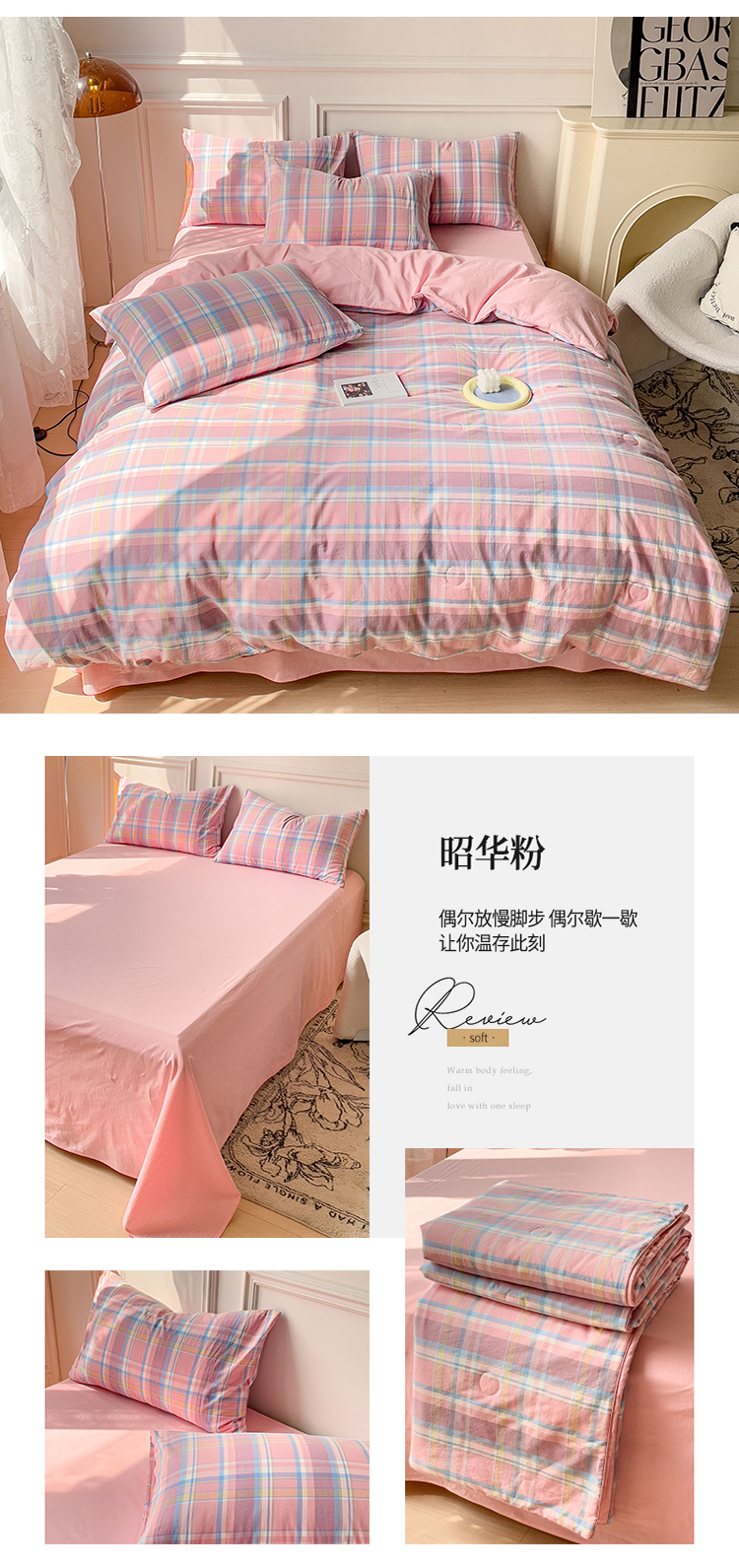 (总)久典家居 2025新款全棉色织水洗棉大豆被 被子被芯,组合图仅供展示不可下单,芭蕾粉,茶里咖,多芙绿,乔安咖,乔安绿,昭华粉,昭华蓝