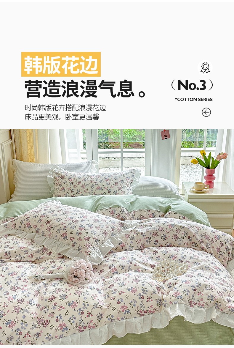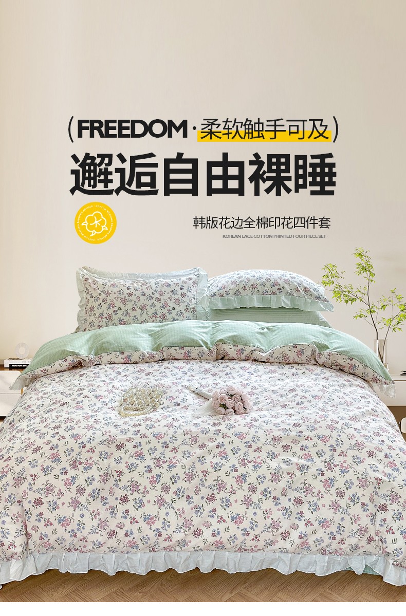 (总)清雅福 2026春夏新品韩版全棉双层纱镂空花边系列四件套,半岛花园-粉,半岛花园-兰,粉色回忆-紫,花丛小兔,落日余晖,芊叶,蔷薇花园,少女花季