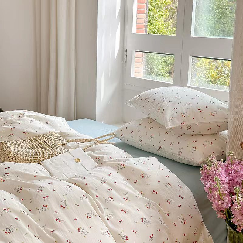 玖玖爱 2023新款双层纱有氧纱印花四件套 花季