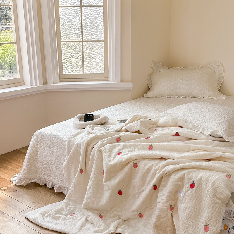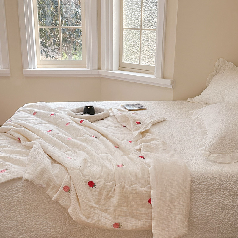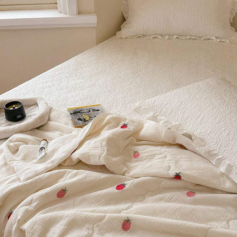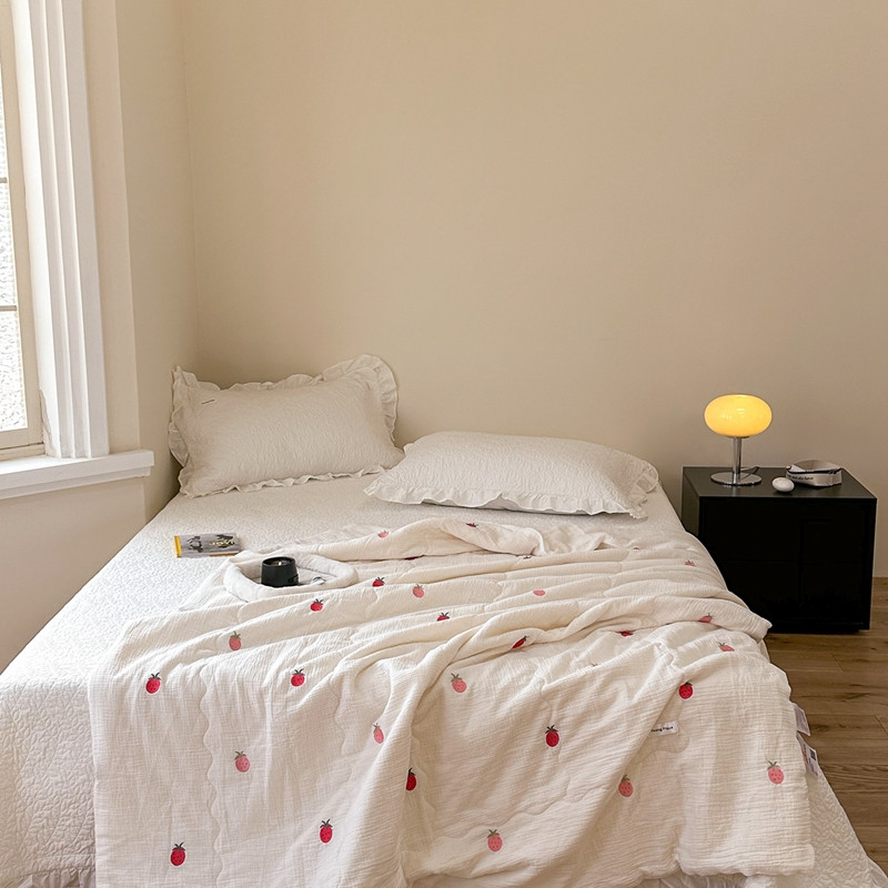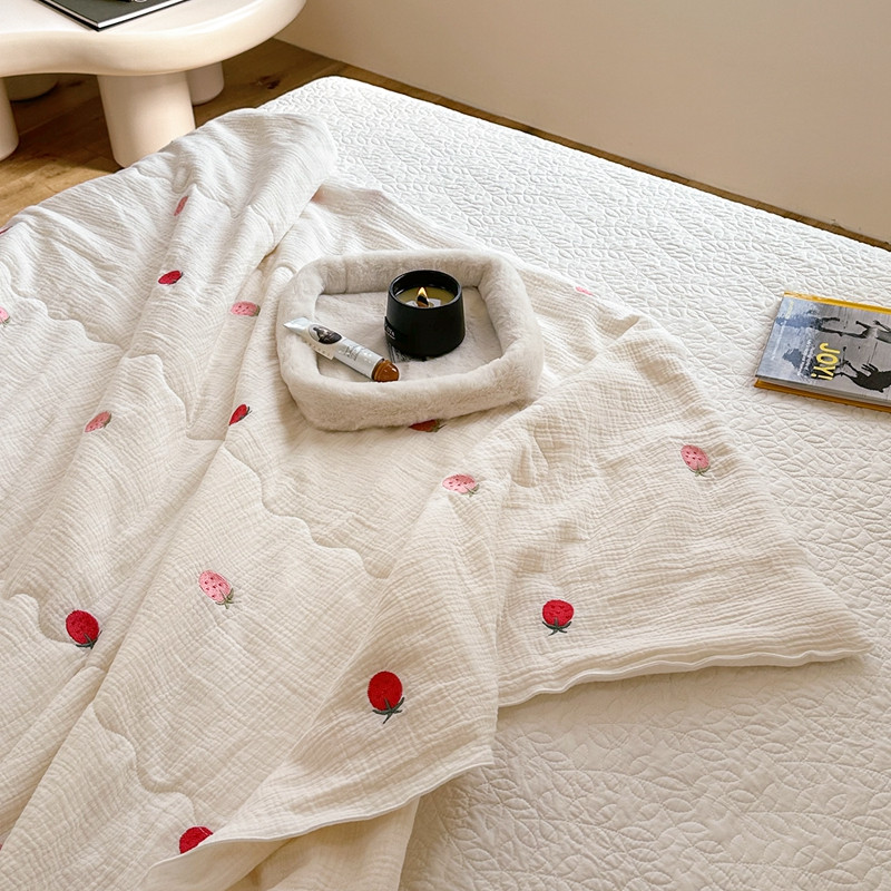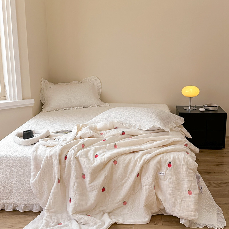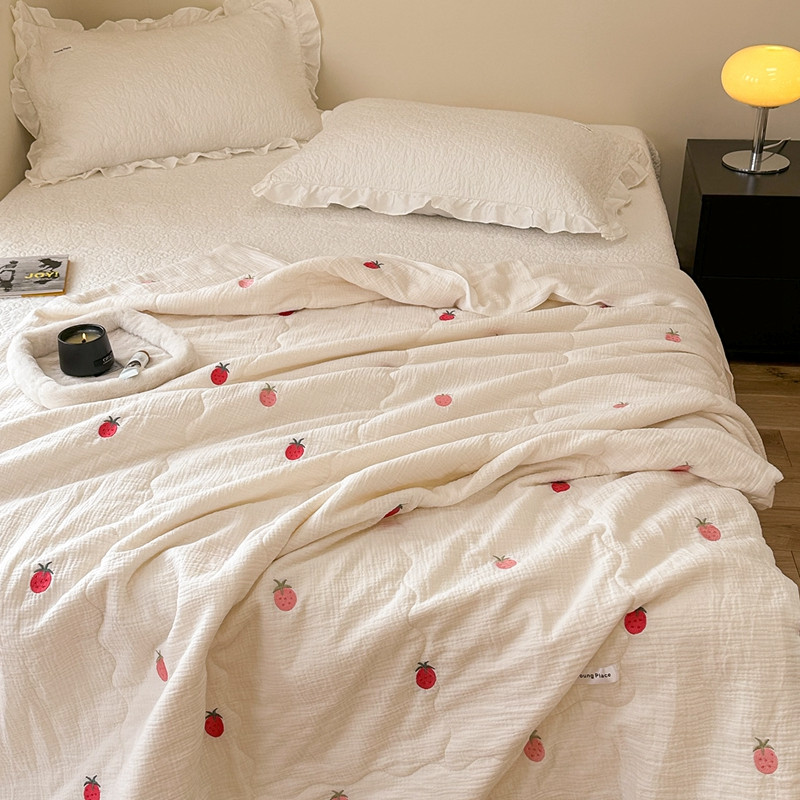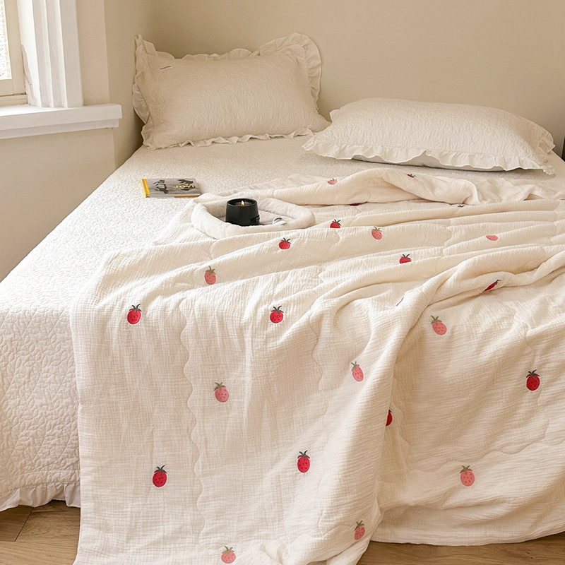 洋铭区 2023新款全棉皱皱双层纱夏被 香甜草莓