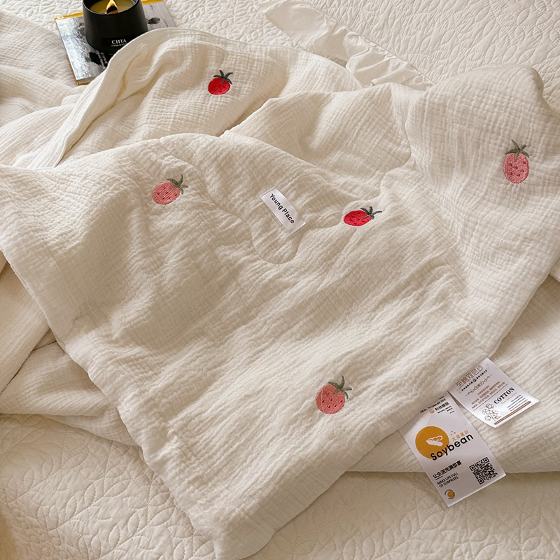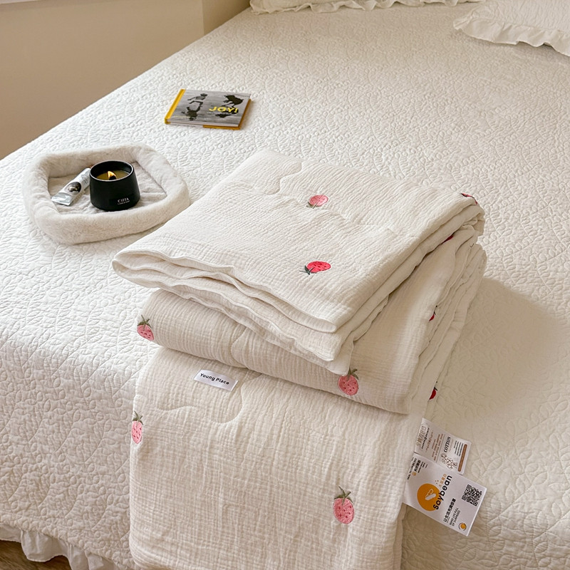 商品名称:洋铭区 2023新款全棉皱皱双层纱夏被 香甜草莓