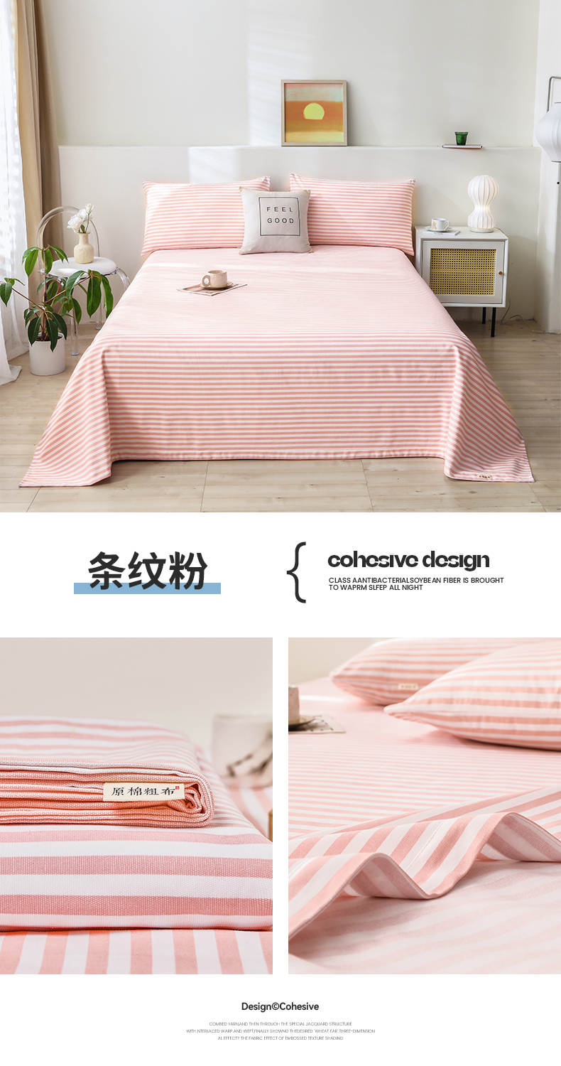 商品名称:大元 2025新款舒适透气全棉老粗布床单床笠 条纹粉