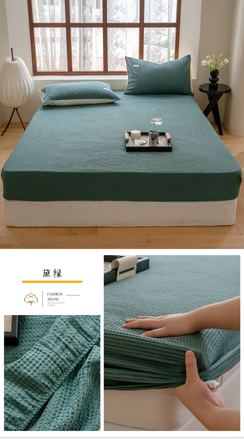 • 91家纺网 家纺一手货源 找家纺 时光里 2023新款60支全棉华夫格单品床笠 黛绿
