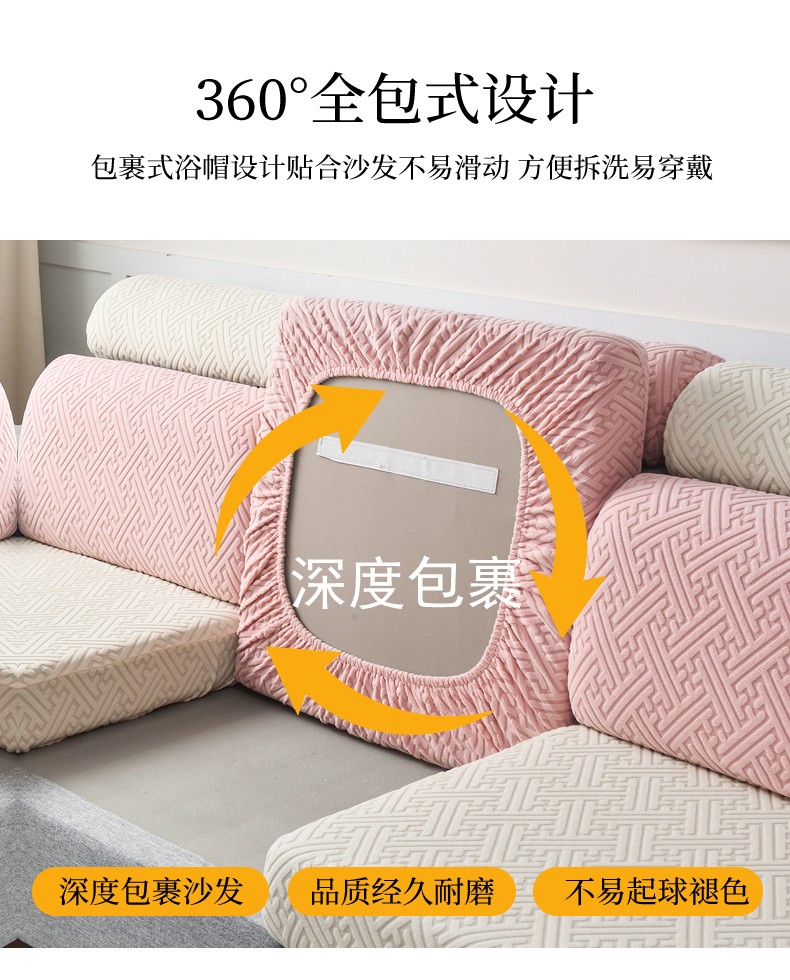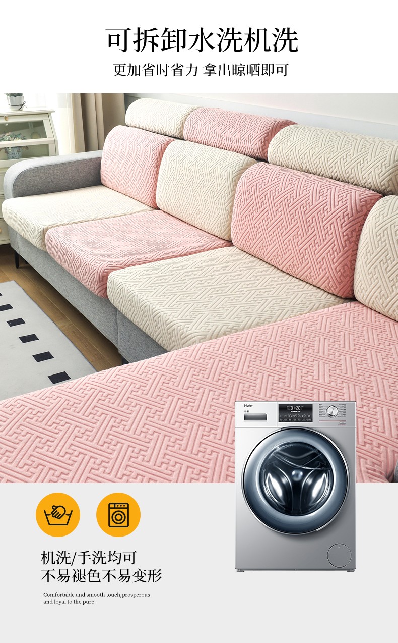 当前位置: 91家纺网 > 商品网购 > 居家布艺 > 坐垫/椅垫/沙发垫 > 沙发垫 > 千彤2023防滑防尘可拆卸水洗机洗全包款沙发套罩沙发笠韵律系列米白粉色