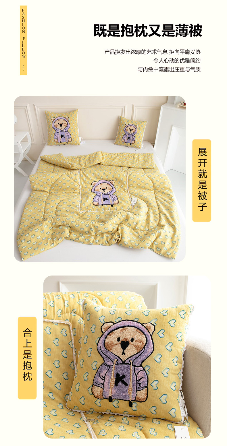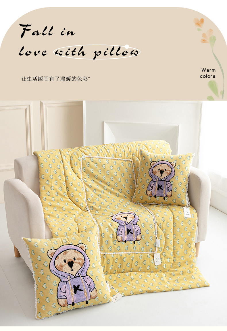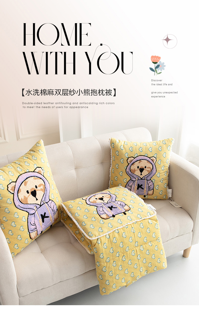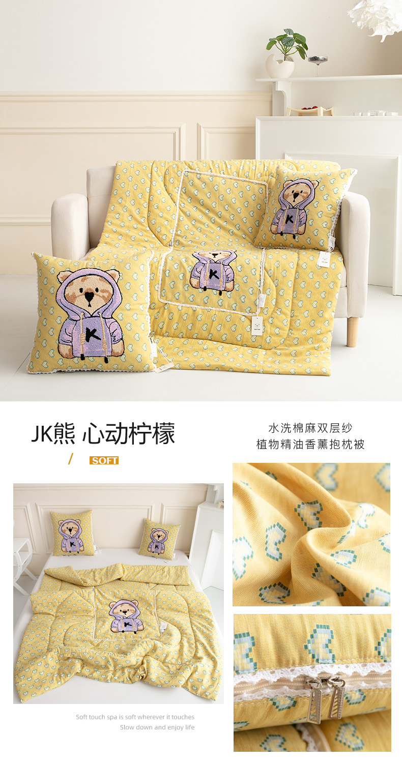翰轩家居 2023新品水洗棉麻泰迪熊系列JK熊抱枕被-四季款 JK熊 心动柠檬