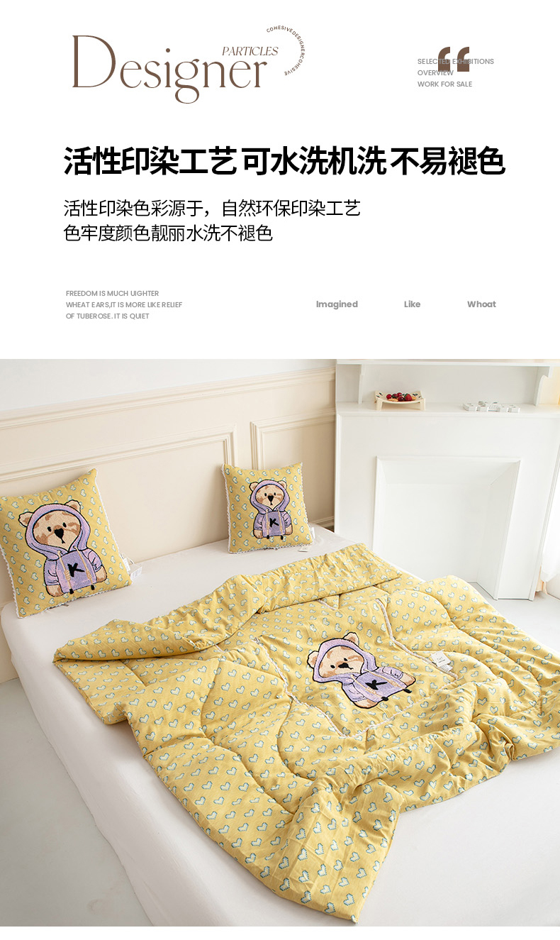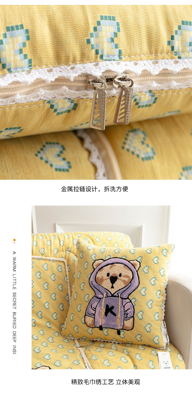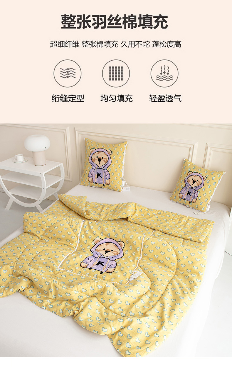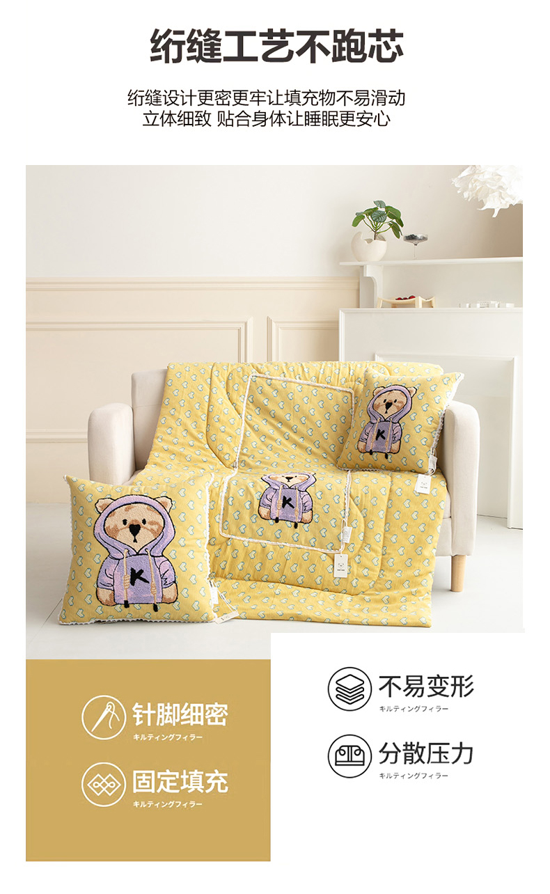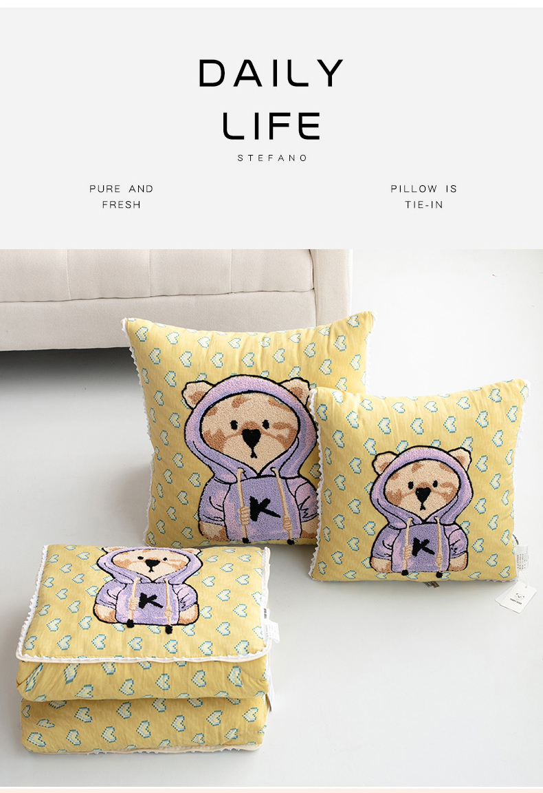 翰轩家居 2023新品水洗棉麻泰迪熊系列JK熊抱枕被-四季款 JK熊 心动柠檬