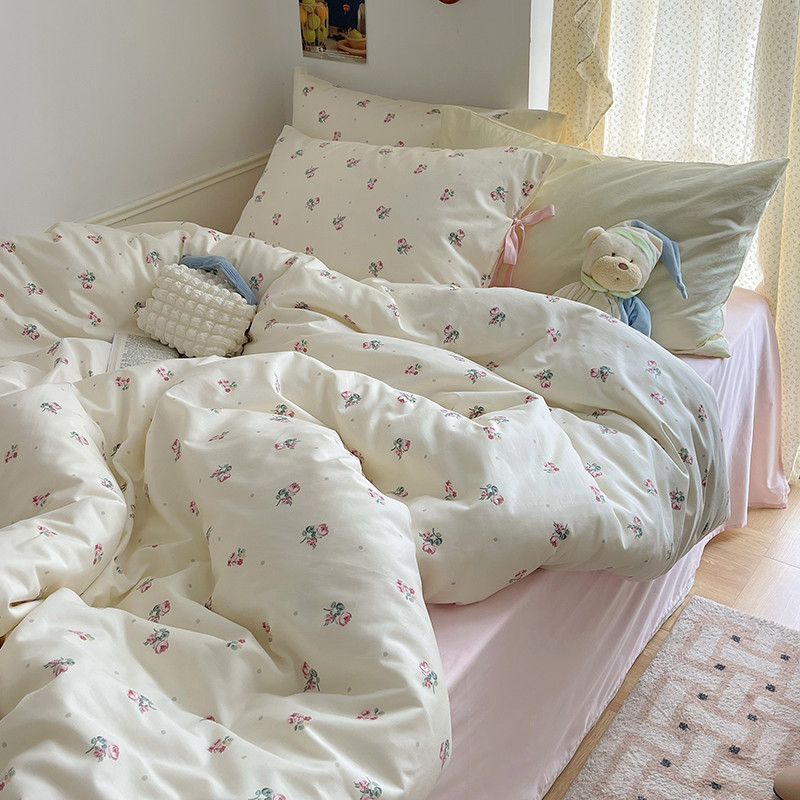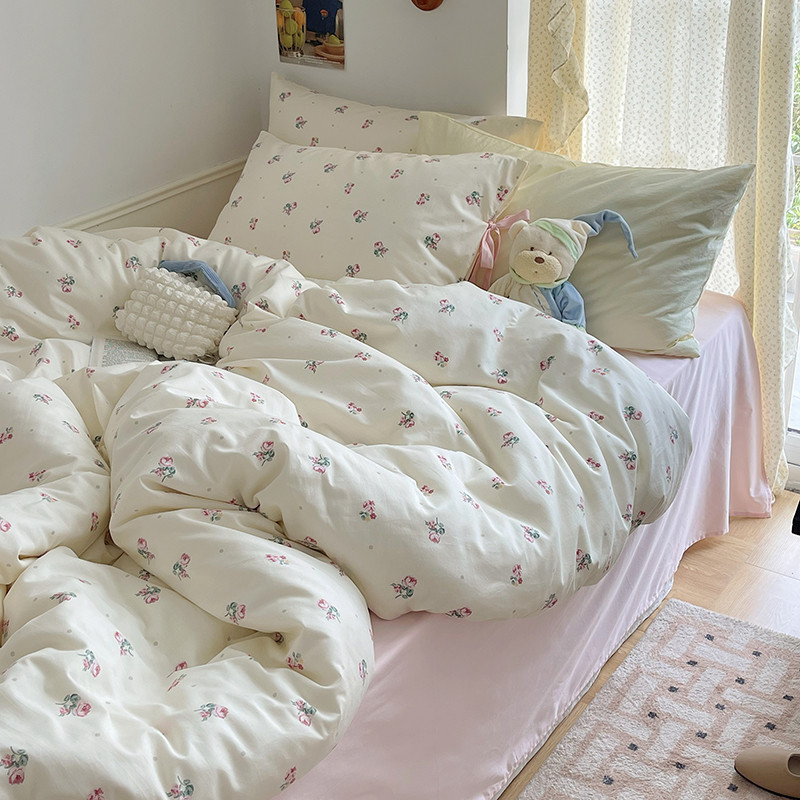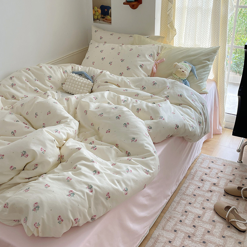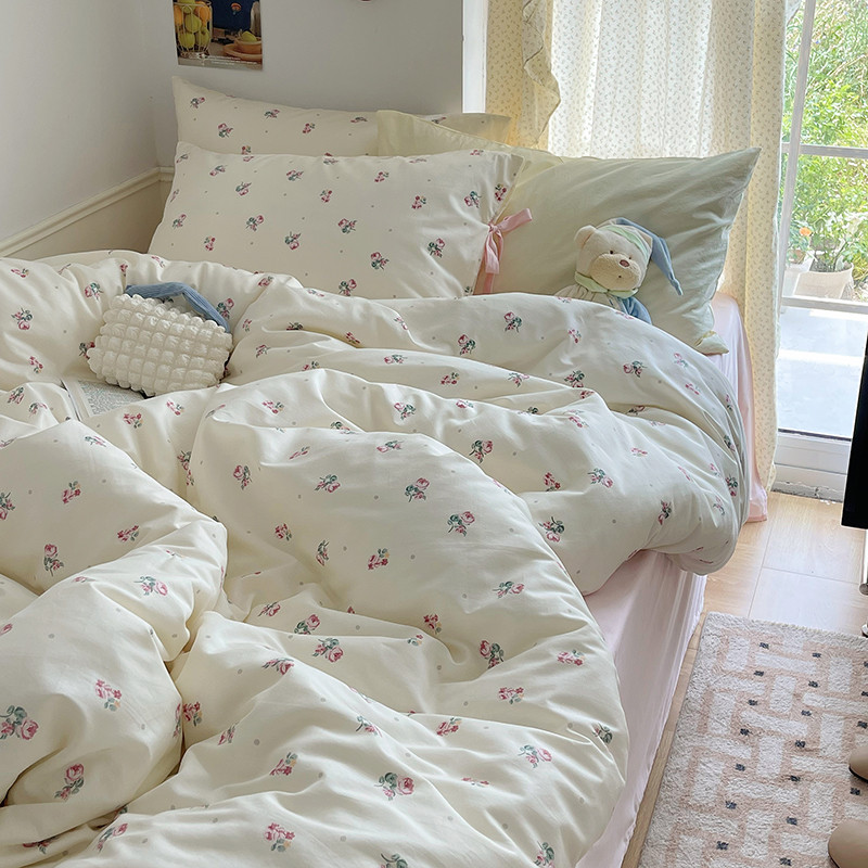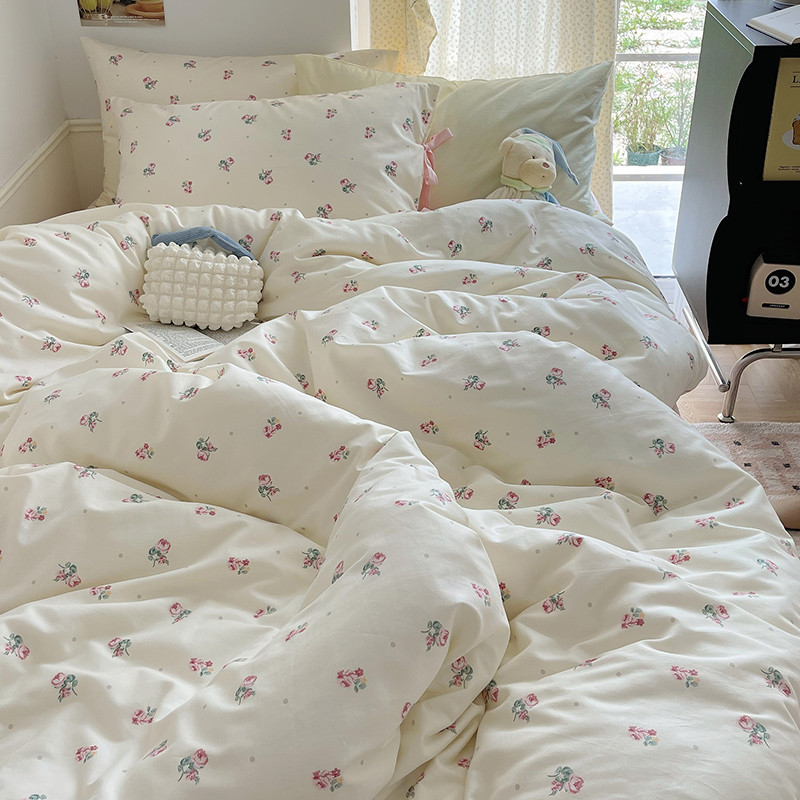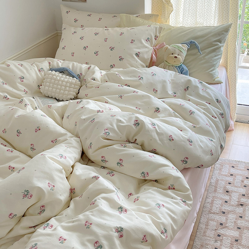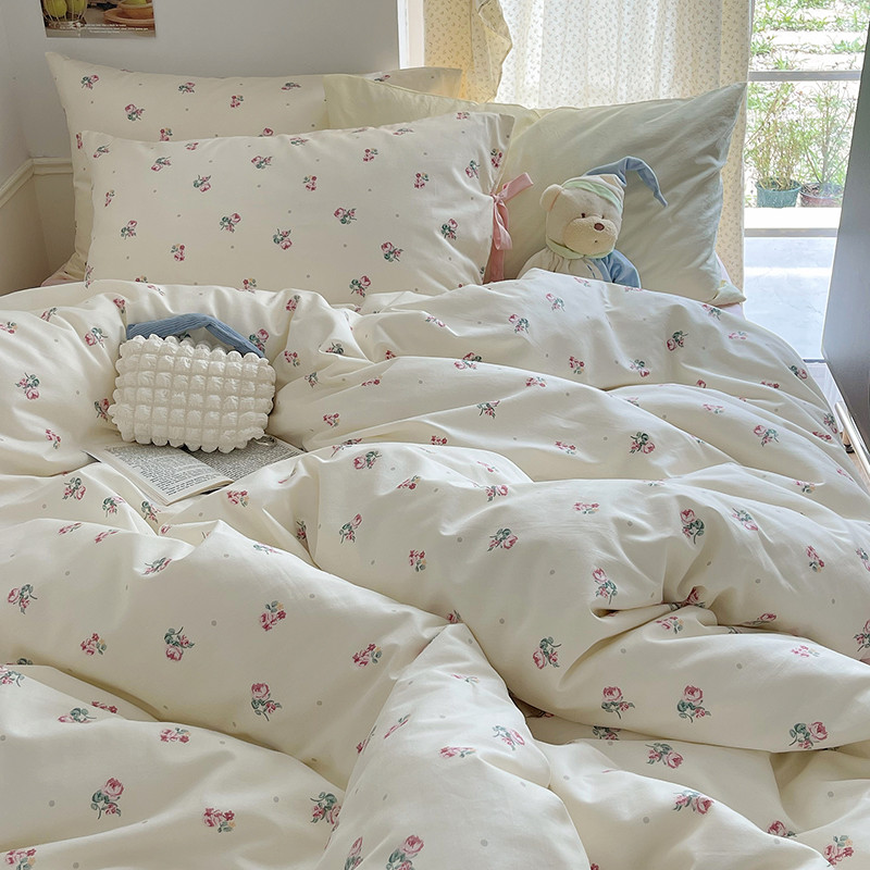 昔可 2023新款亲肤韩系全棉绑带款四件套 点点粉玫瑰