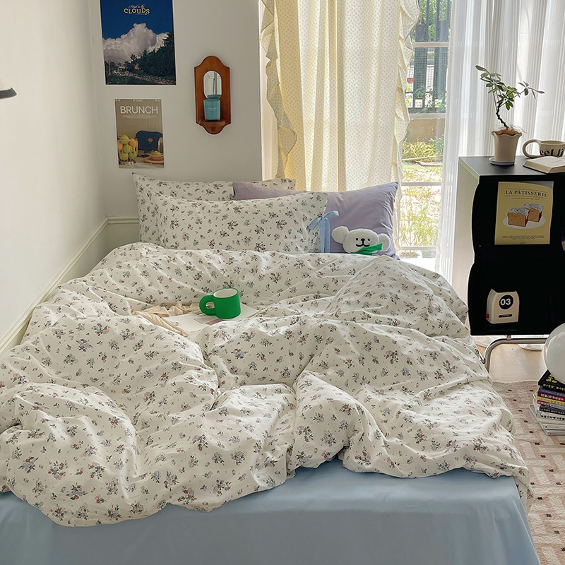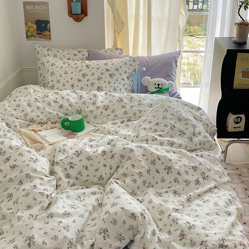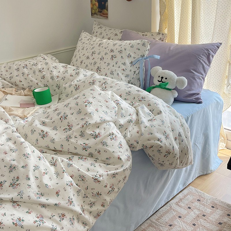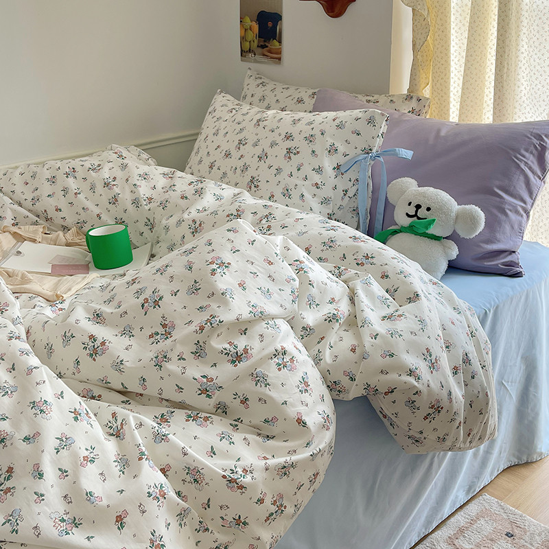昔可 2023新款亲肤韩系全棉绑带款四件套 西西里碎花