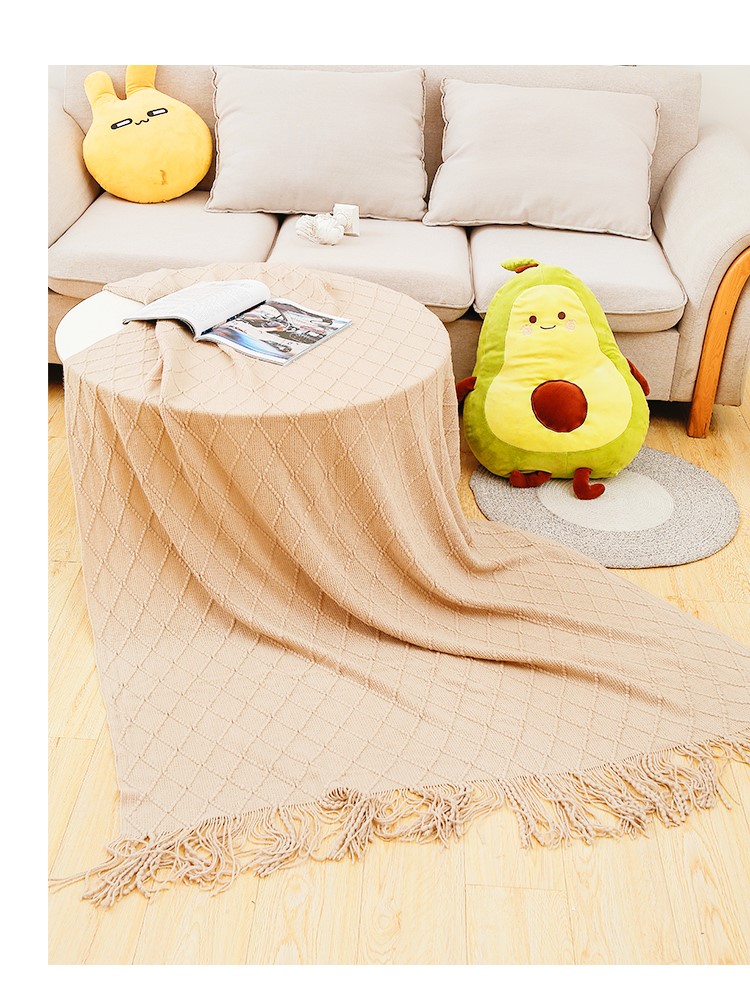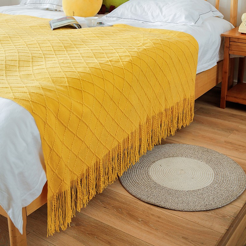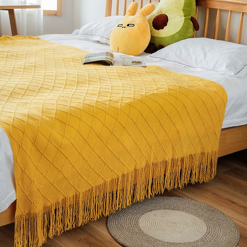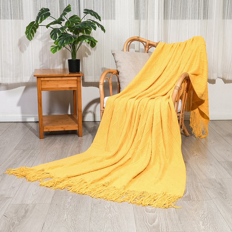 2025新款针织毯沙发毯盖毯流苏薄毯子 明黄