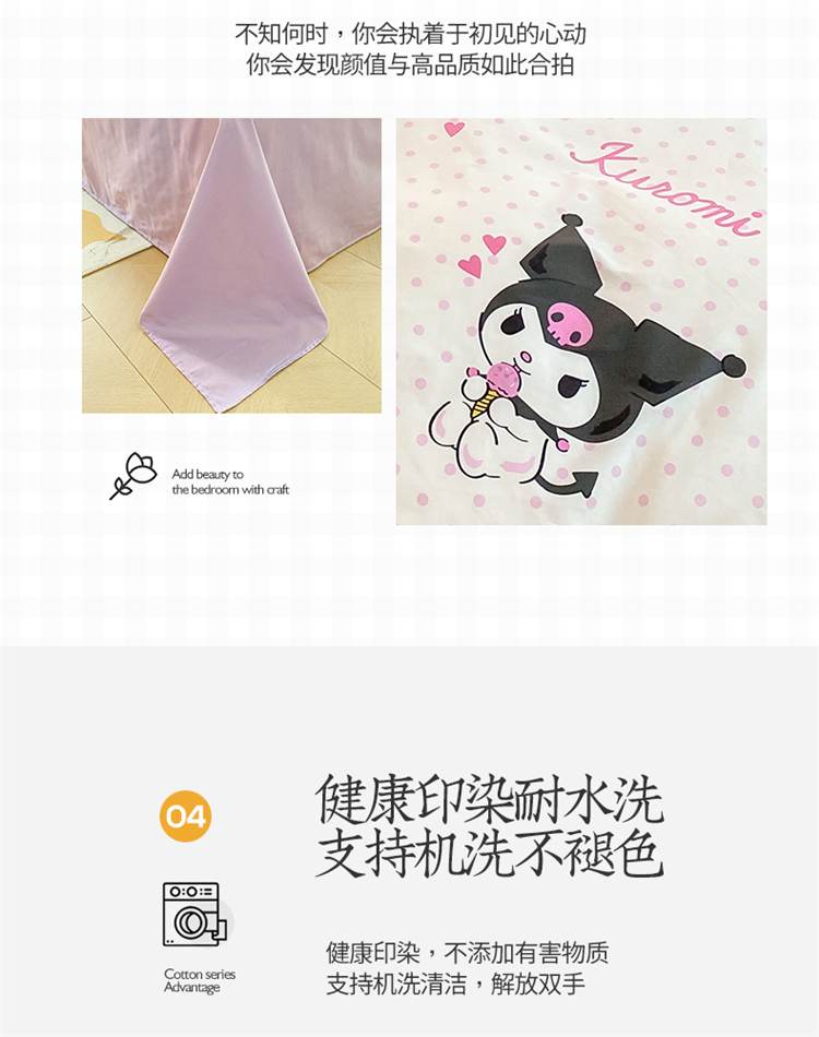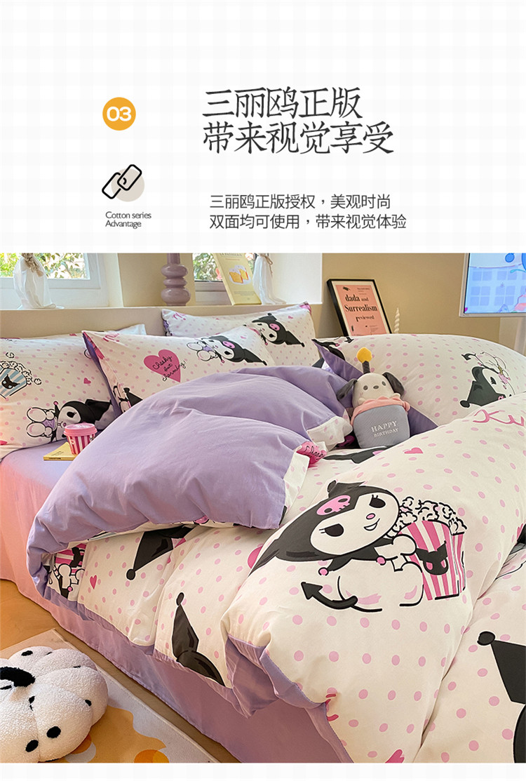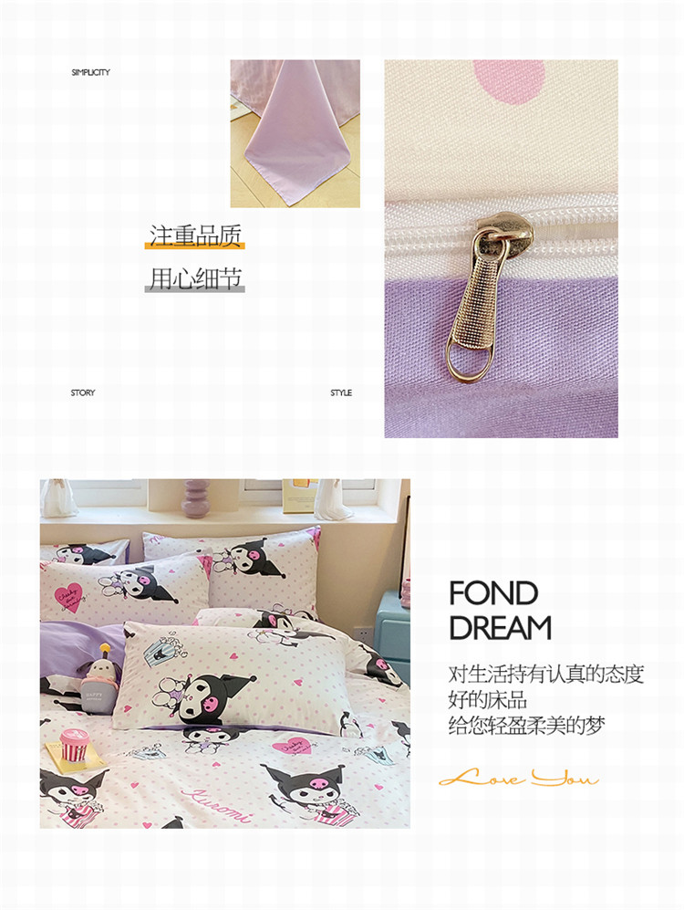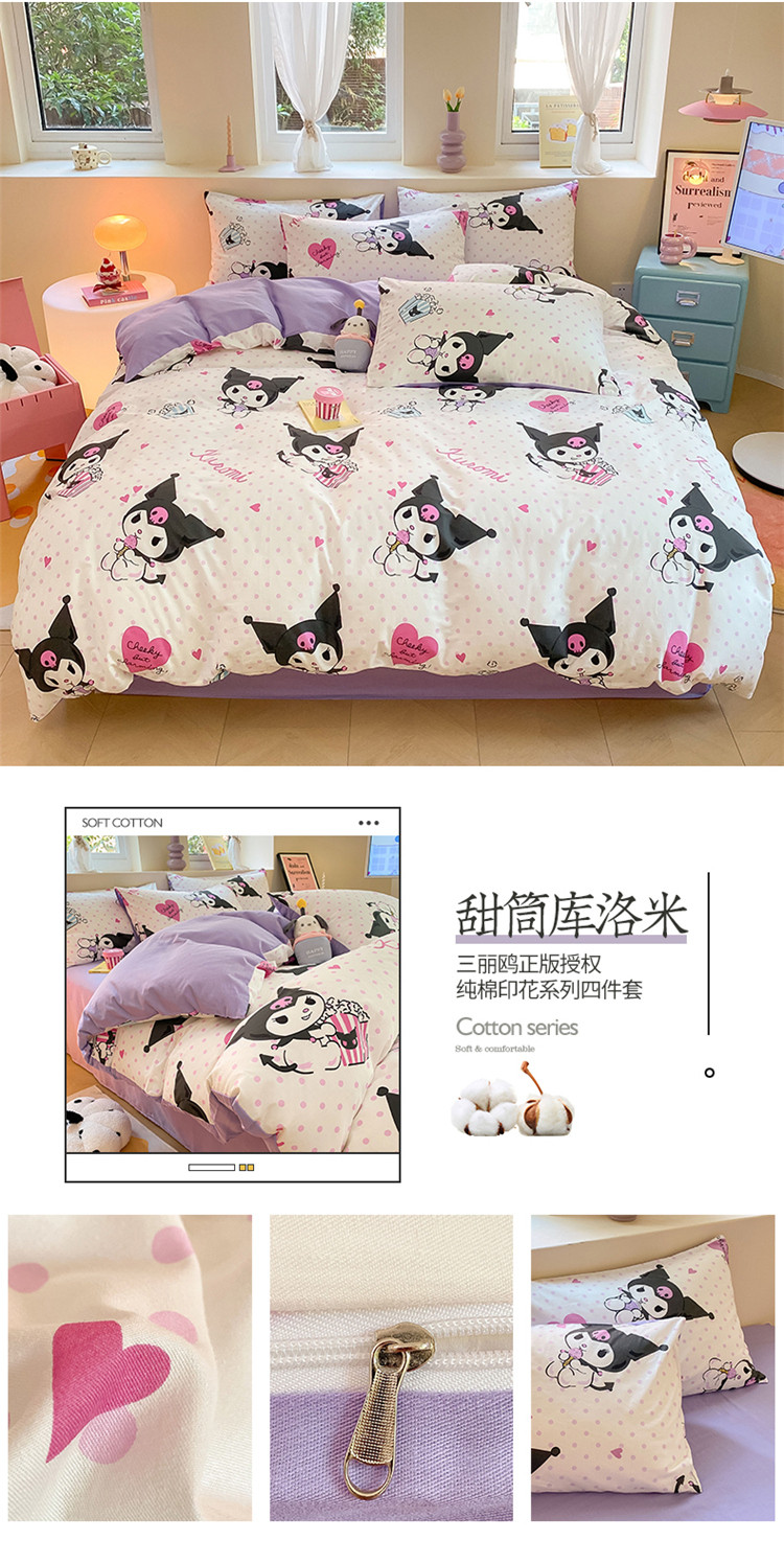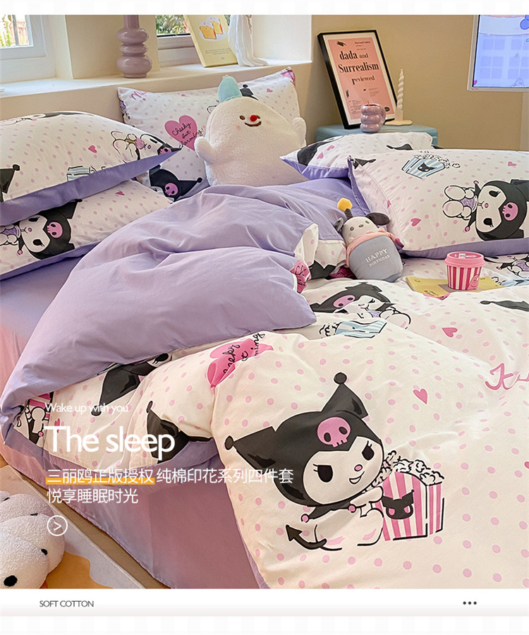 当前位置: 91家纺网 > 商品网购 > 床品套件 > 四件套 > 全棉普通四件套 > 桃子 2023新款三丽鸥正版授权纯棉印花系列四件套甜筒库洛米